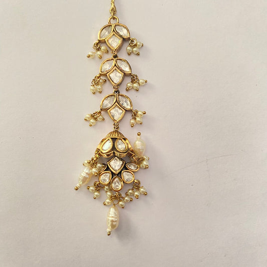 Antique Gold Plated Polki with pearl Drop Mangtika