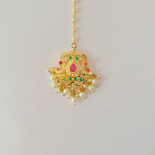 Jadau Mangtika Green and Ruby with Pearl