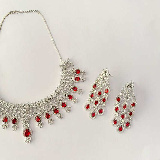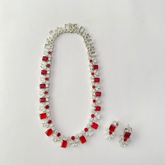 Ruby Silver Plated Diamond Necklace Set