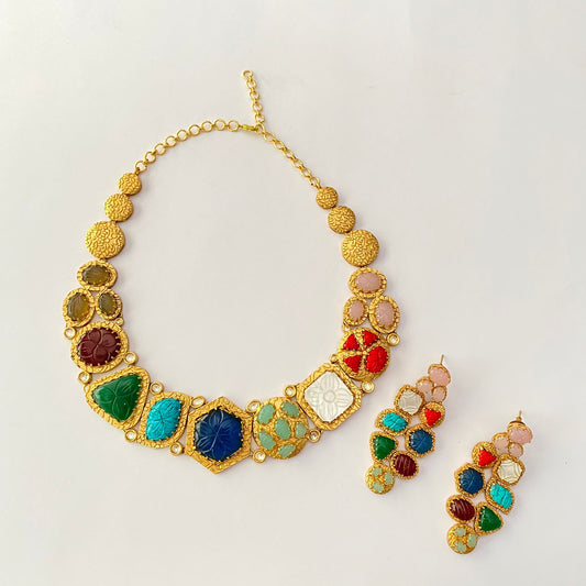 Peach Stone Gold Layer Kashmiri Jhumka Earring