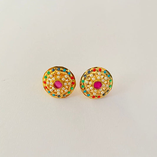 Jadau Gold Plated Multi Color Stud