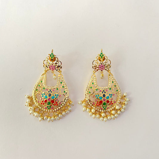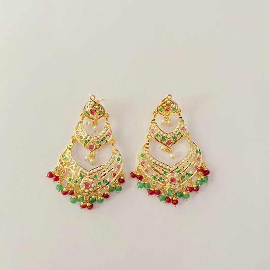 Multi Jadau Gold Plated Chandbali Earring