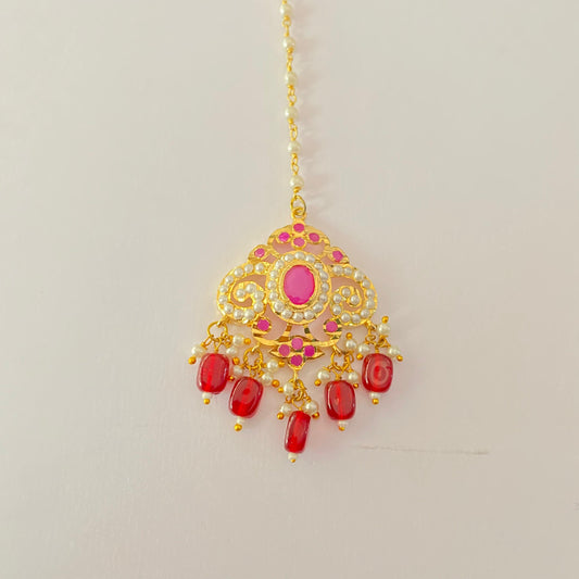 Jadau Mangtika Green and Ruby with Pearl
