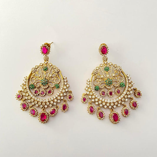 Ruby & Emerald Antique Gold Plated Chandbali Earring