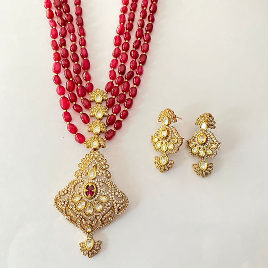 Moissanite Kundan long Ruby Necklace Set