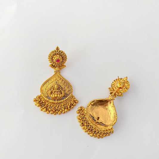 Antique Gold Plated Aquamarine With Ruby Back Clip Earring