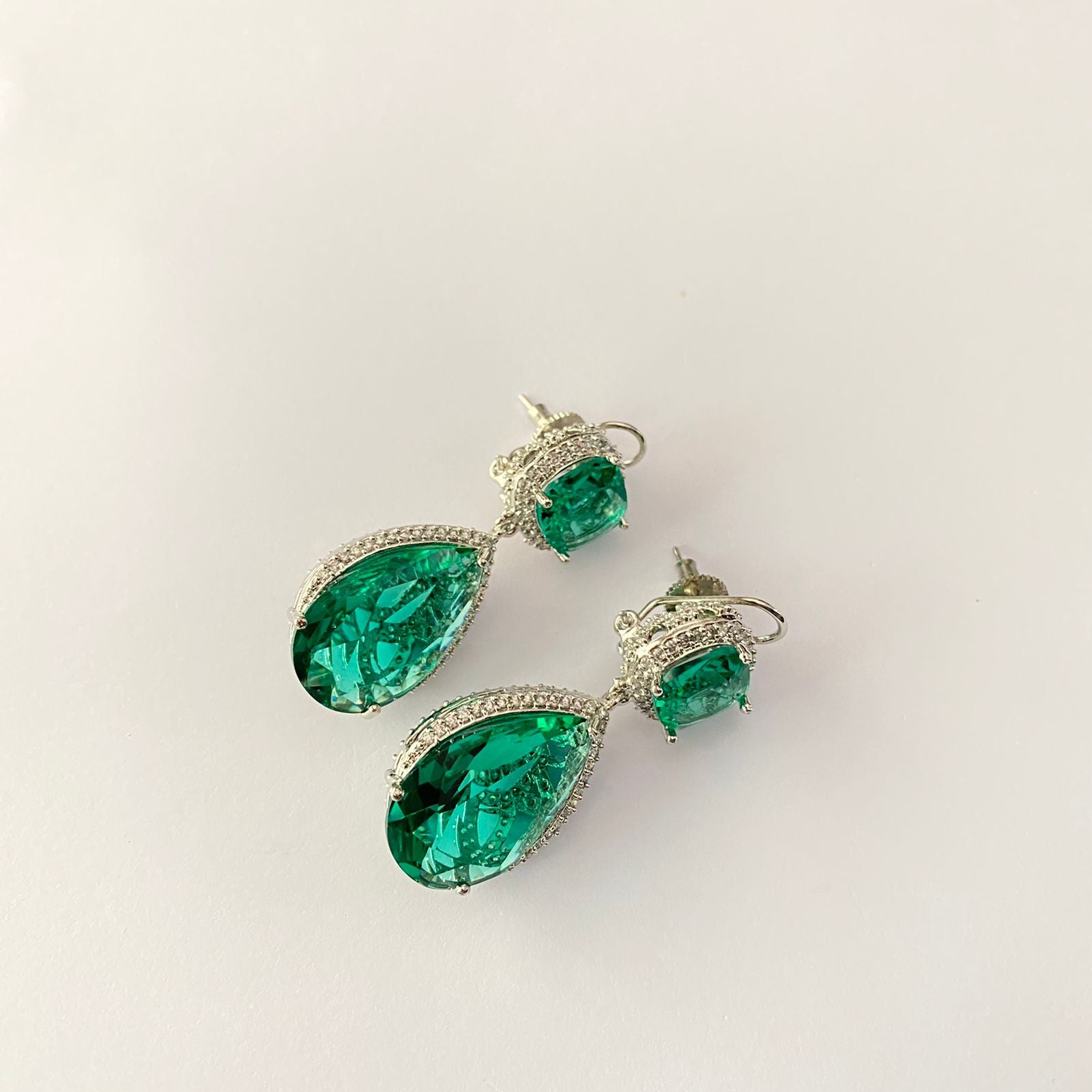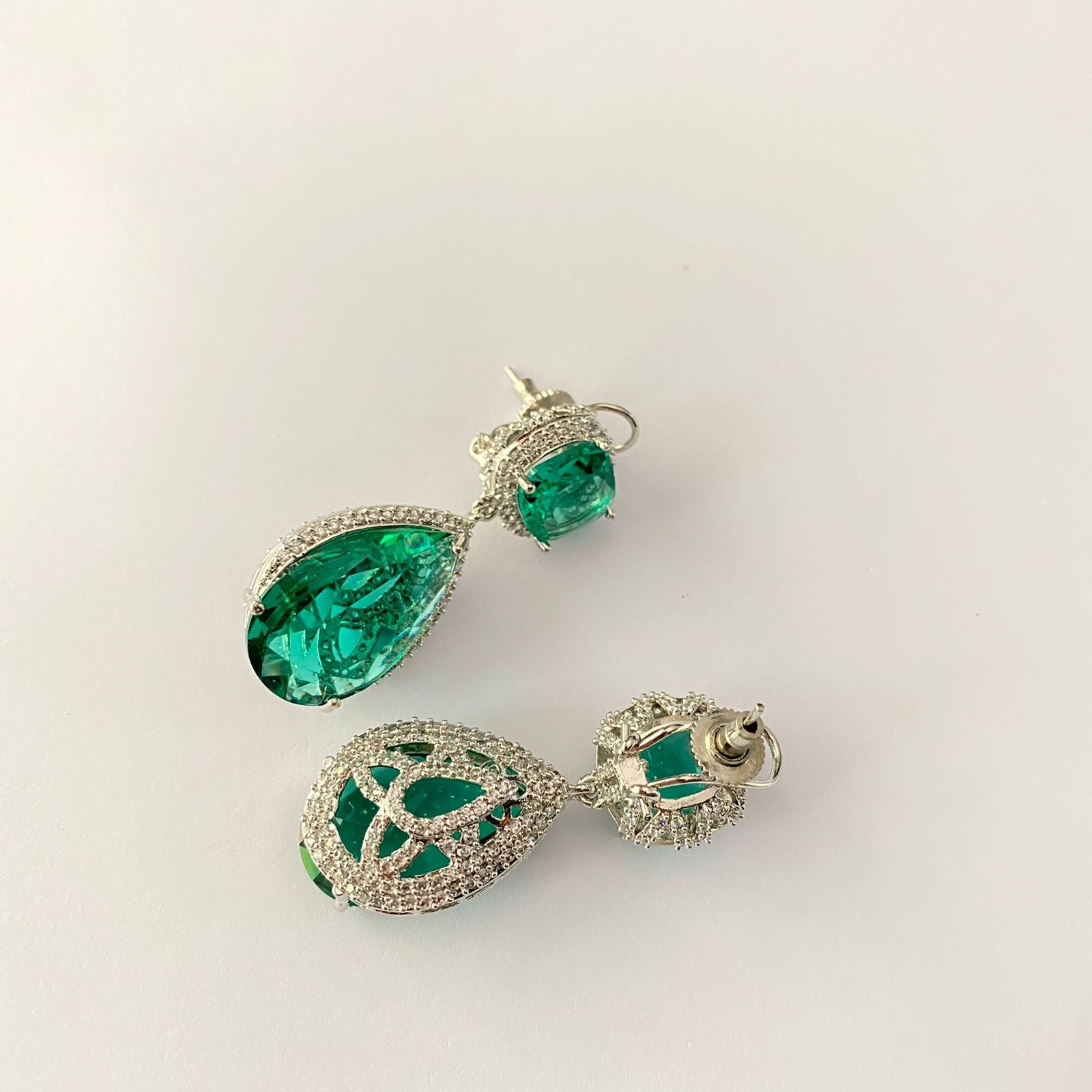Aquamarine Diamond Silver Plated With Back Clip Earring