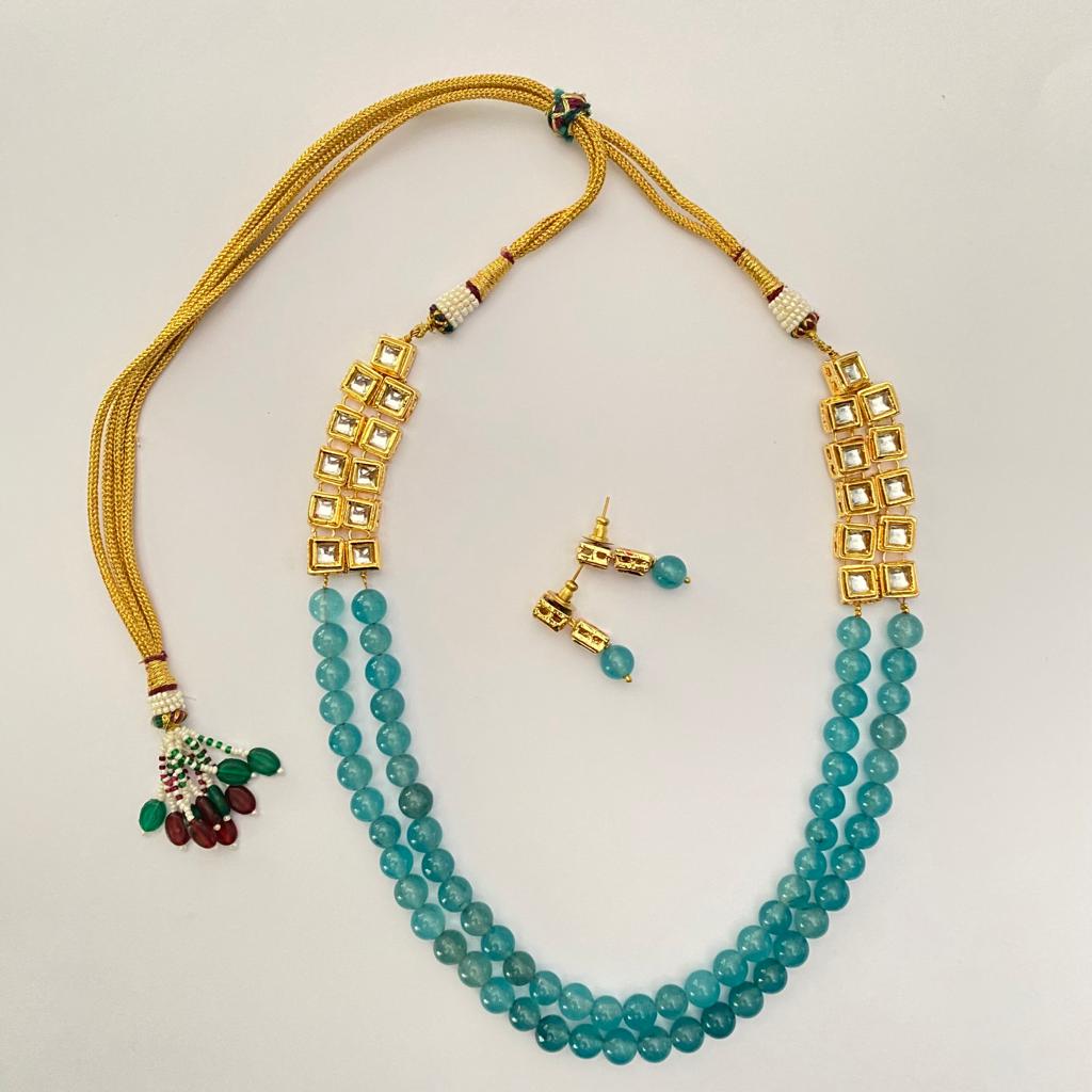 Aquamarine Kundan Gold Plated Double layer Necklace Set