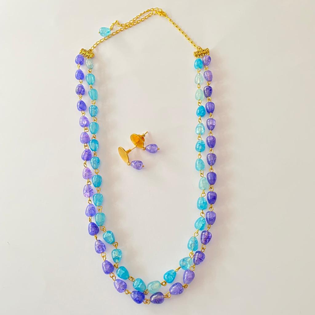 Aquamarine with Amethyst Double string Necklace Set