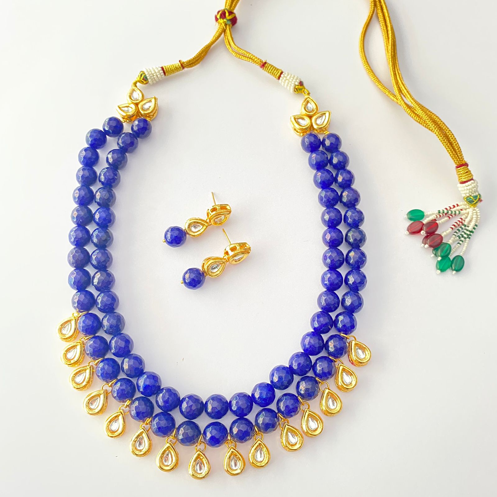 Blue Stone Double String With Kundan Necklace