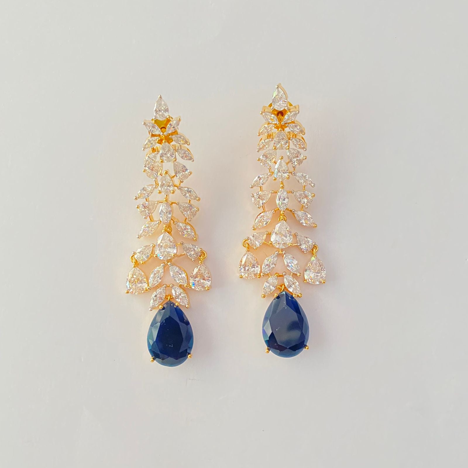 Blue Stone Drop A.D Gold Plated Dangler earring
