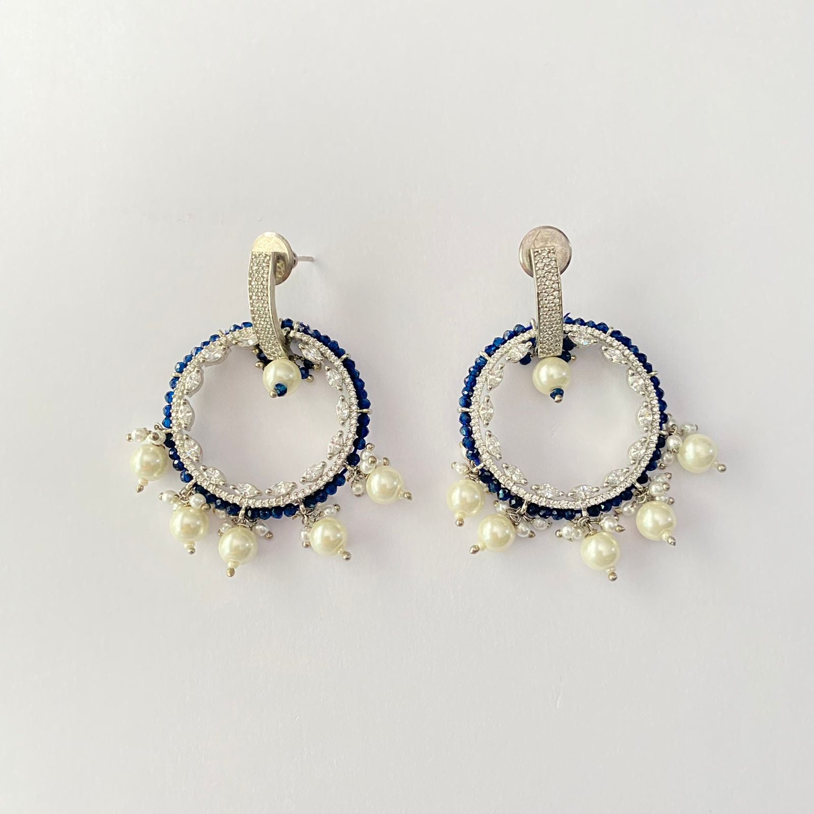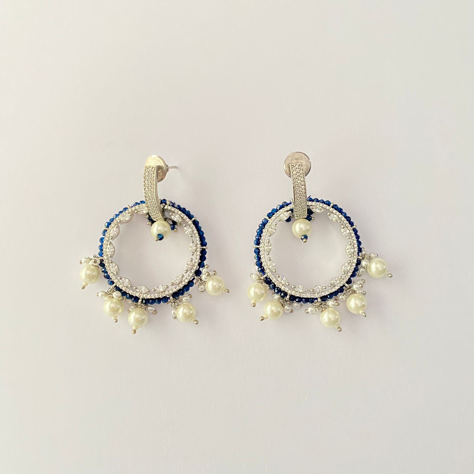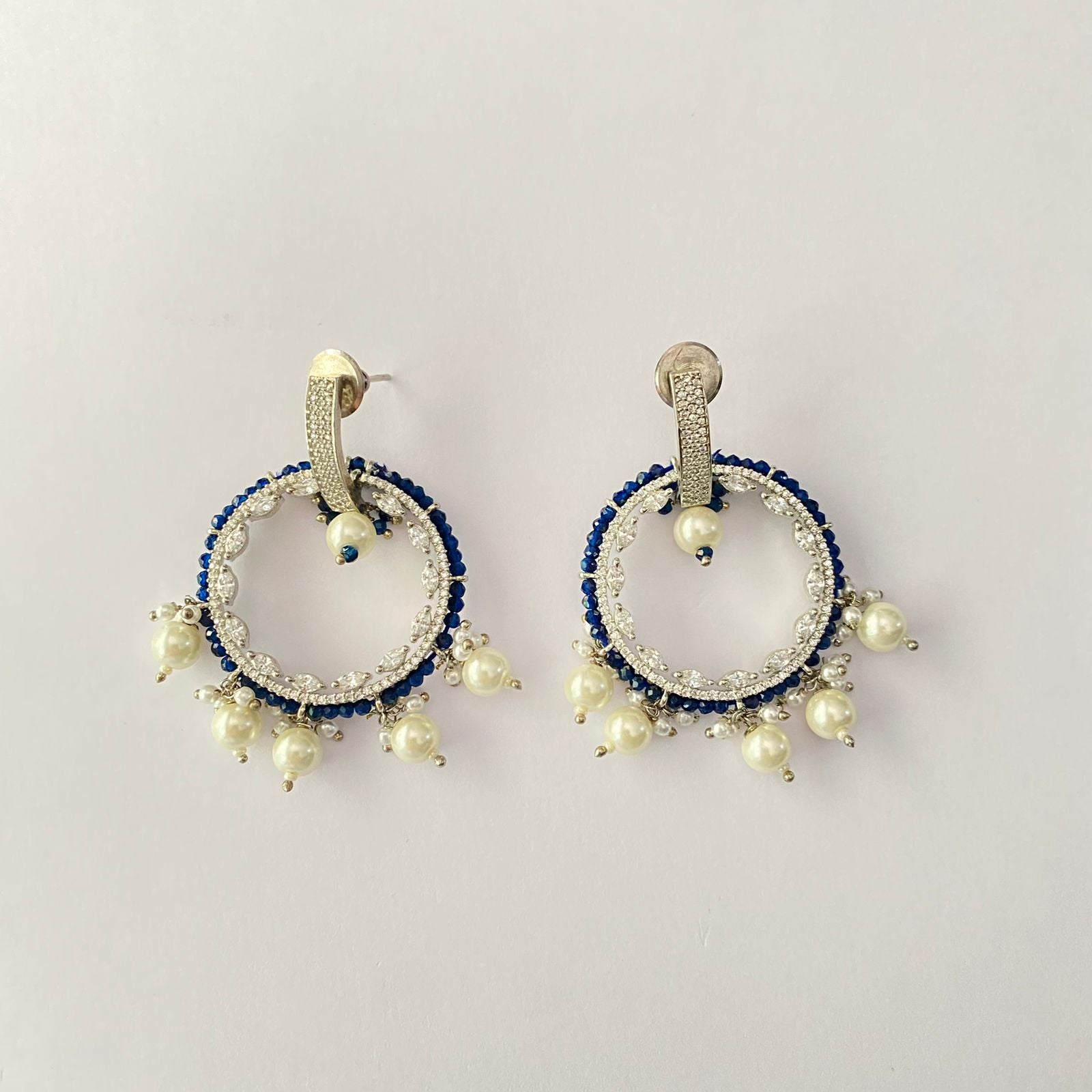 Classy Pearl Silver Plated Blue Beads Dangler Earring