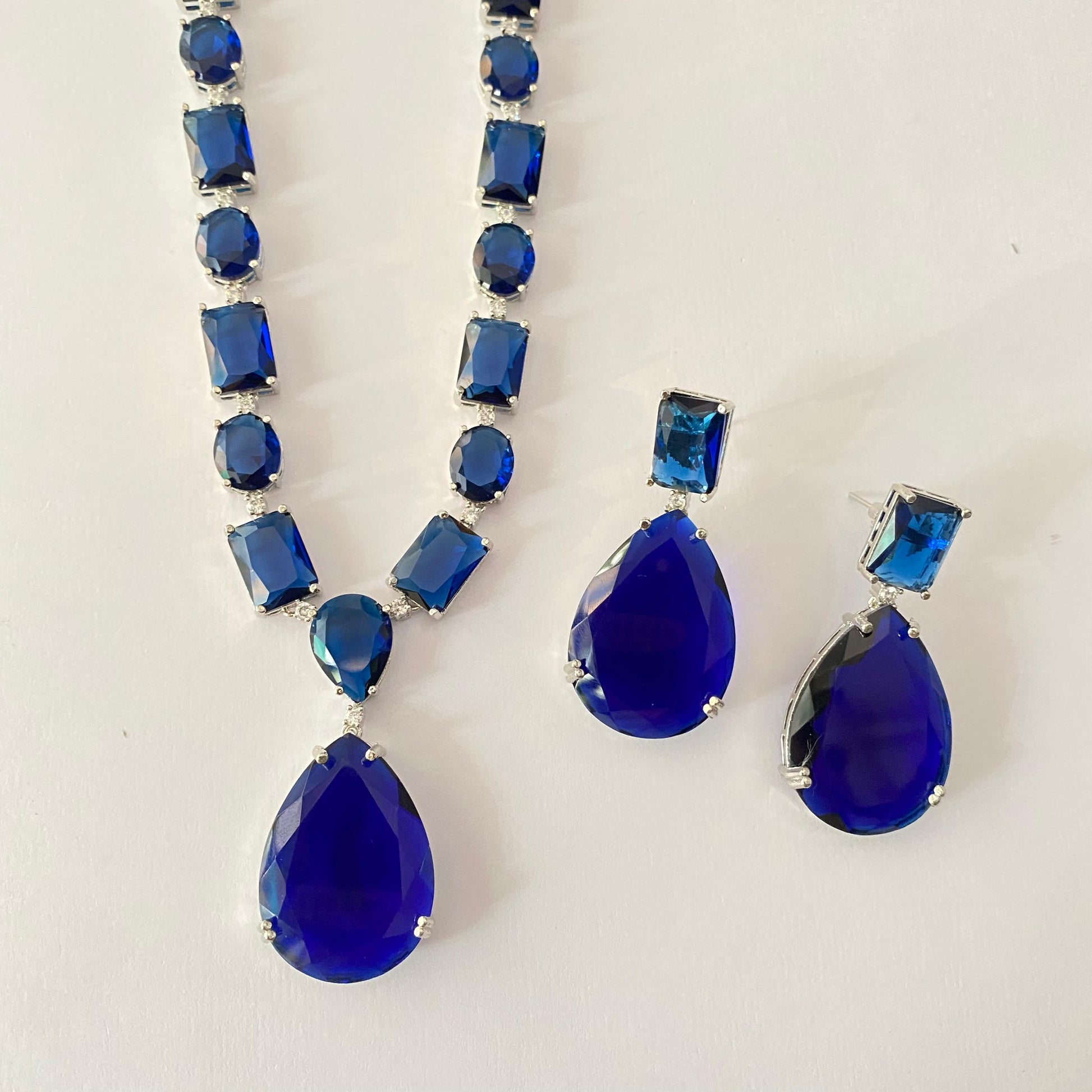 Dazzling Blue Stone Studded Necklace Set in Silver Plated