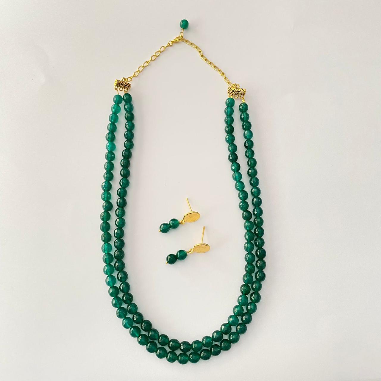 Double Line Emerald Stone Necklace Set
