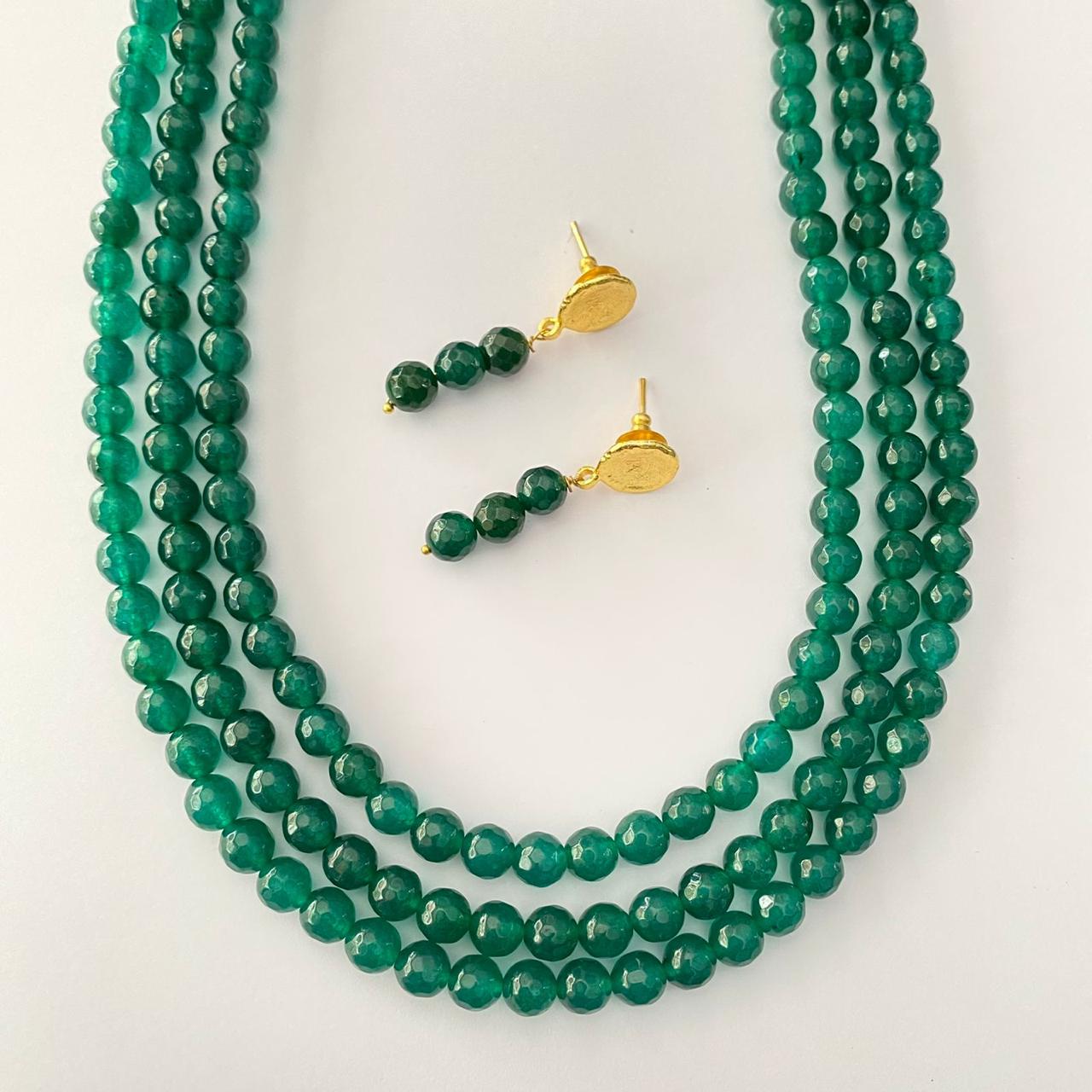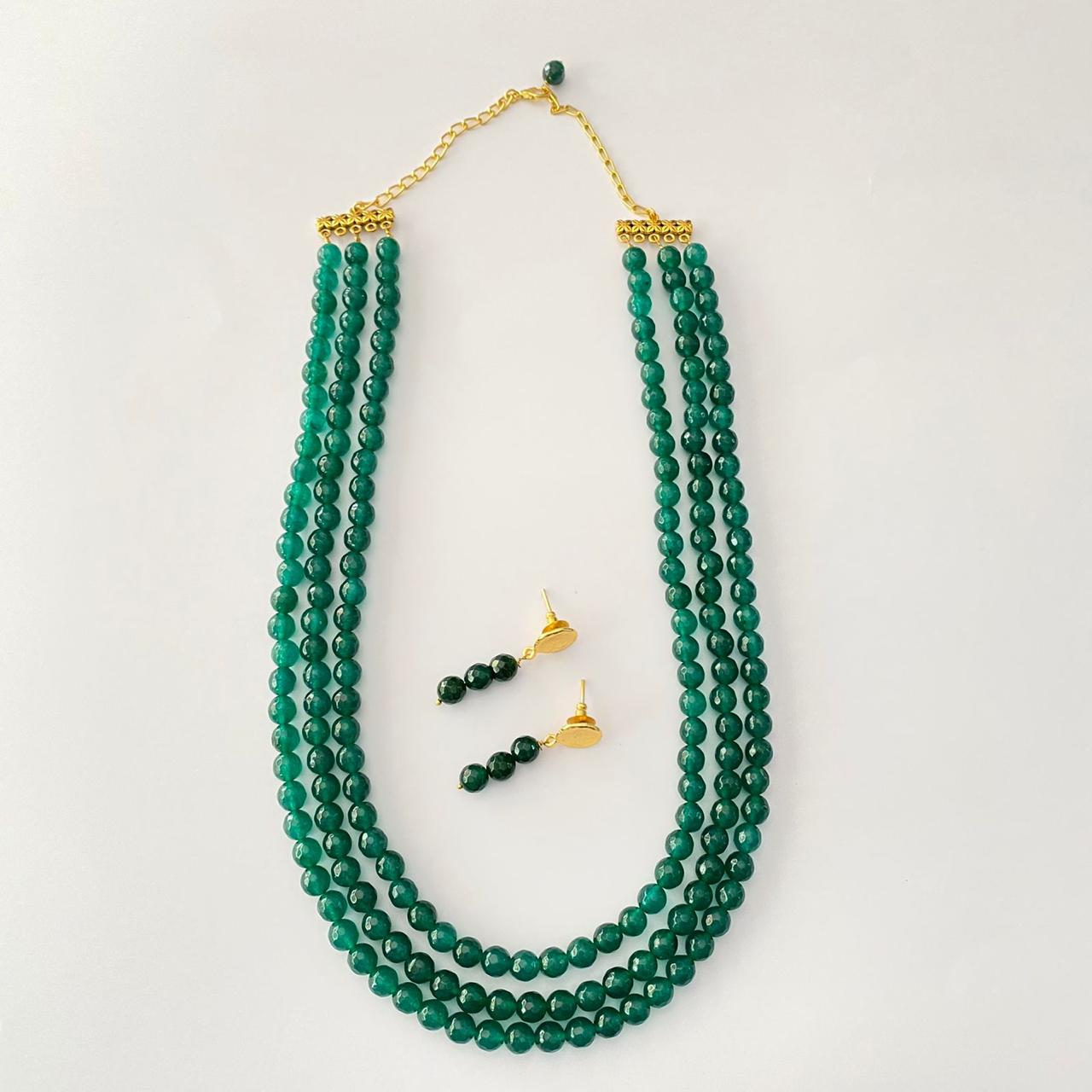 Emerald Three Line Necklace Set