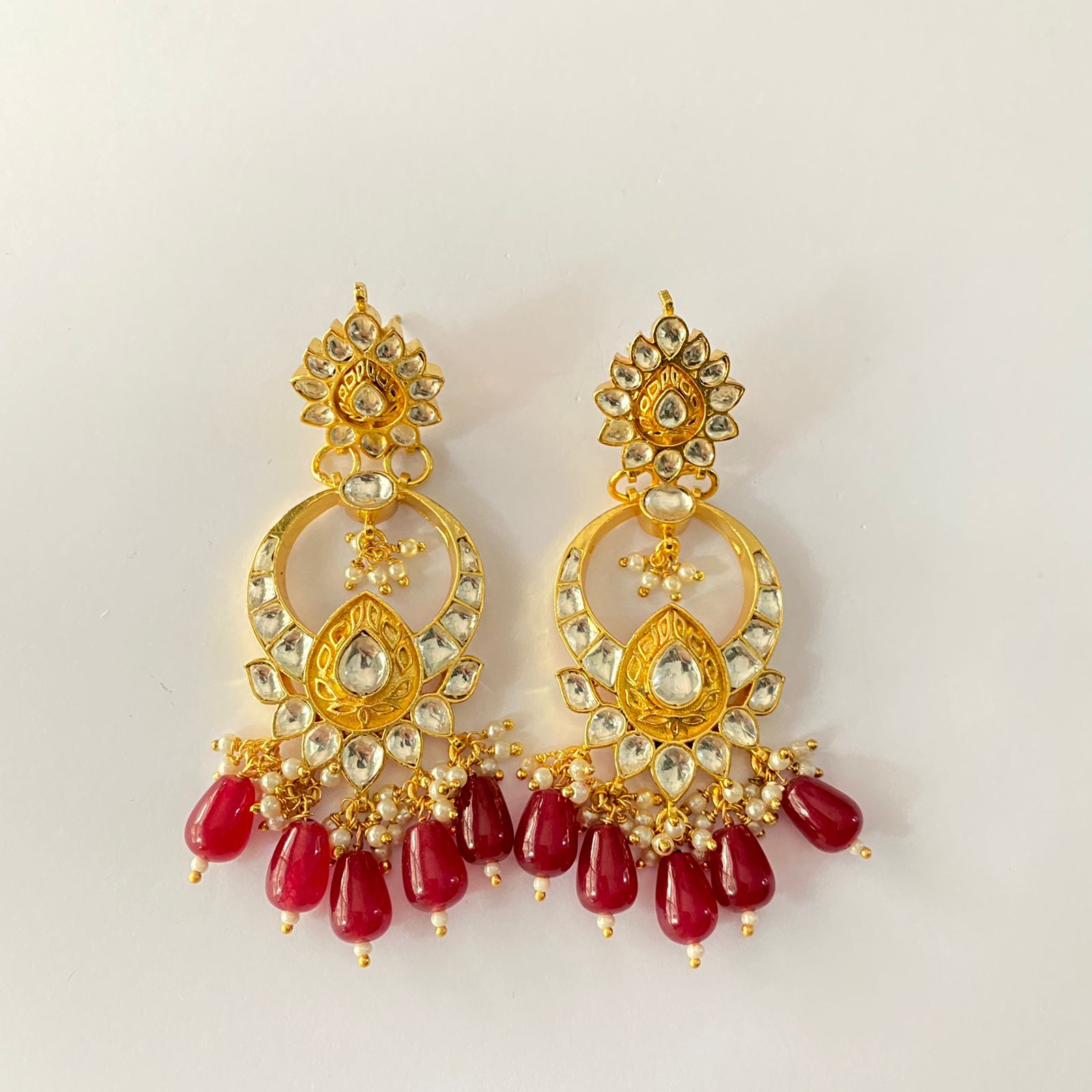 Ethnic Pachi Kundan Red Drop Dangler Earring