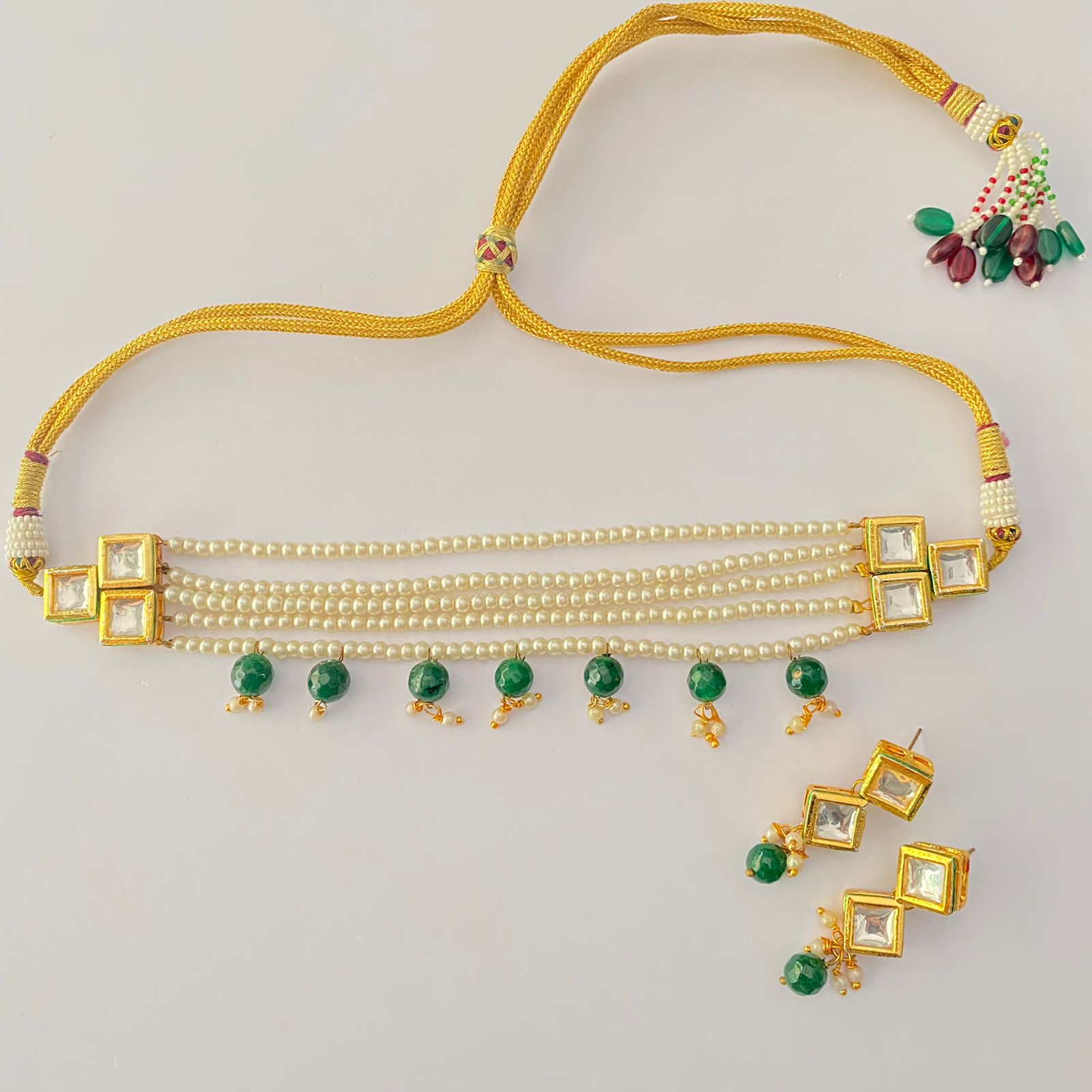 GOLD PLATED EMERALD KUNDAN POLKI CHOKER