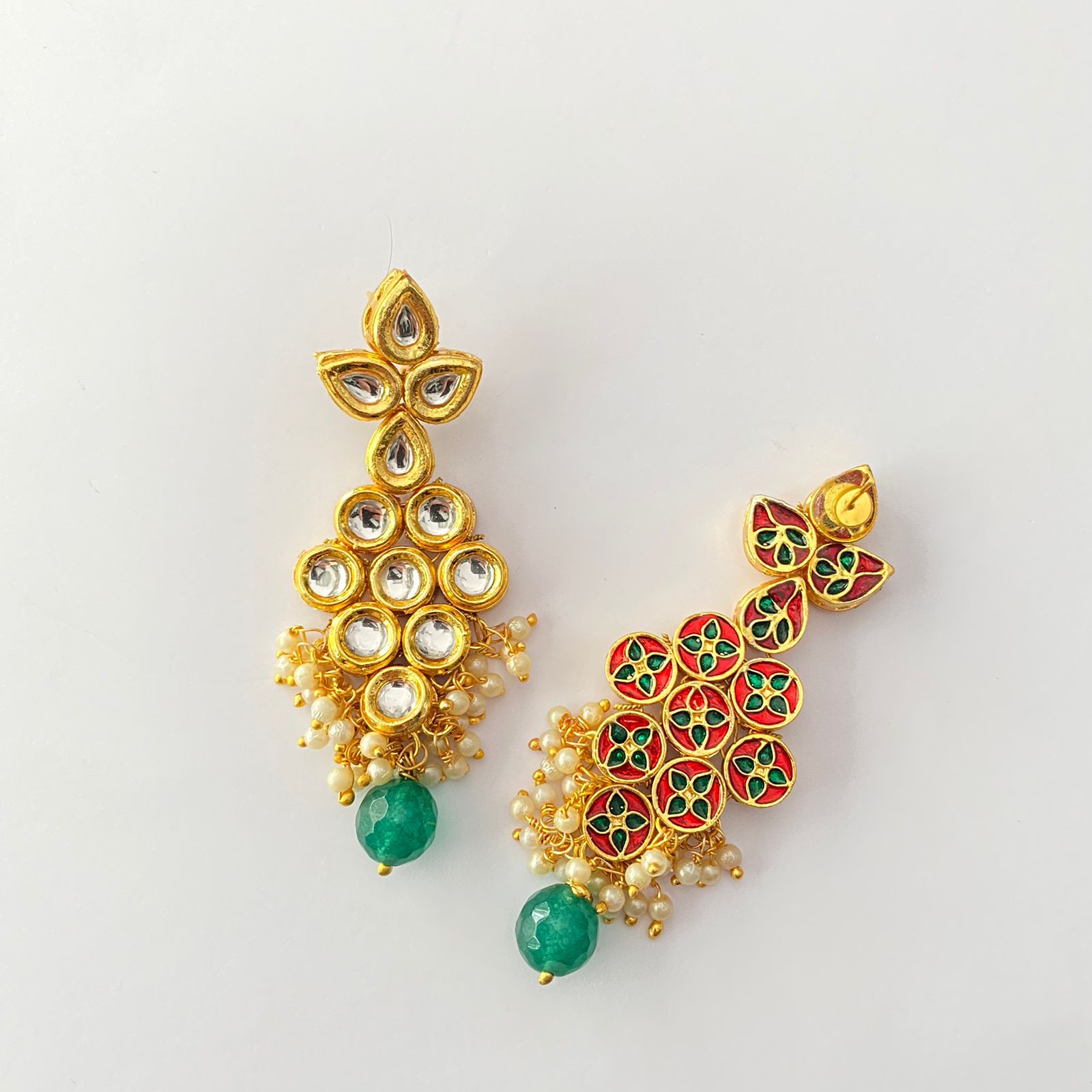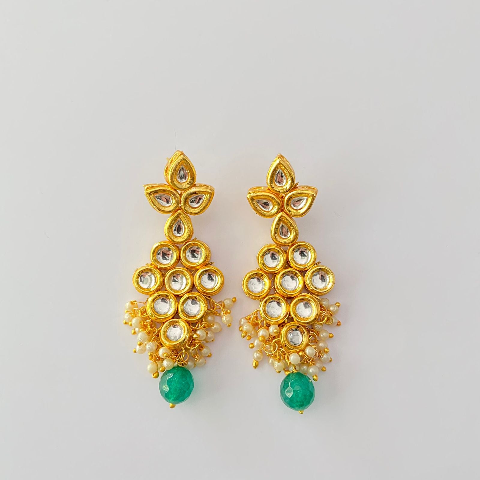 Gold Plated Kundan Emerald Drop Pearl Earring
