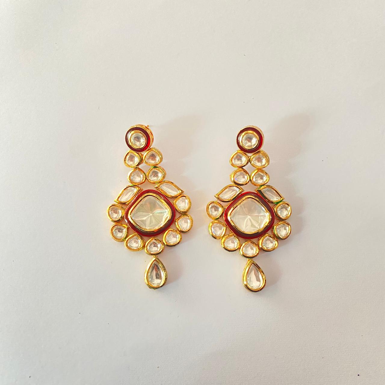Gold Plated Kundan Floral Drop Earring