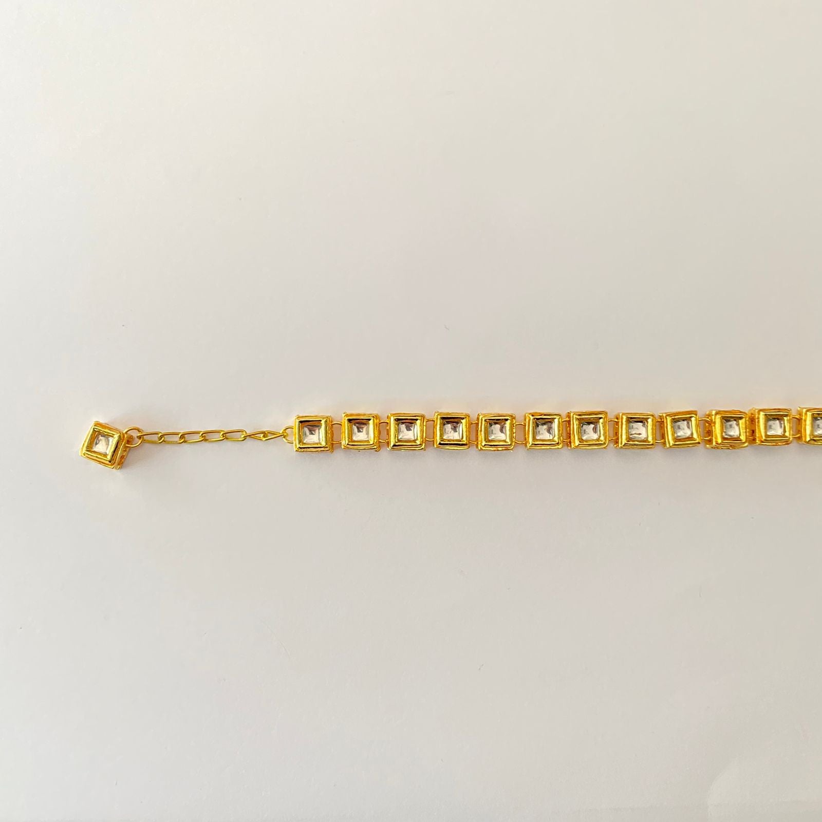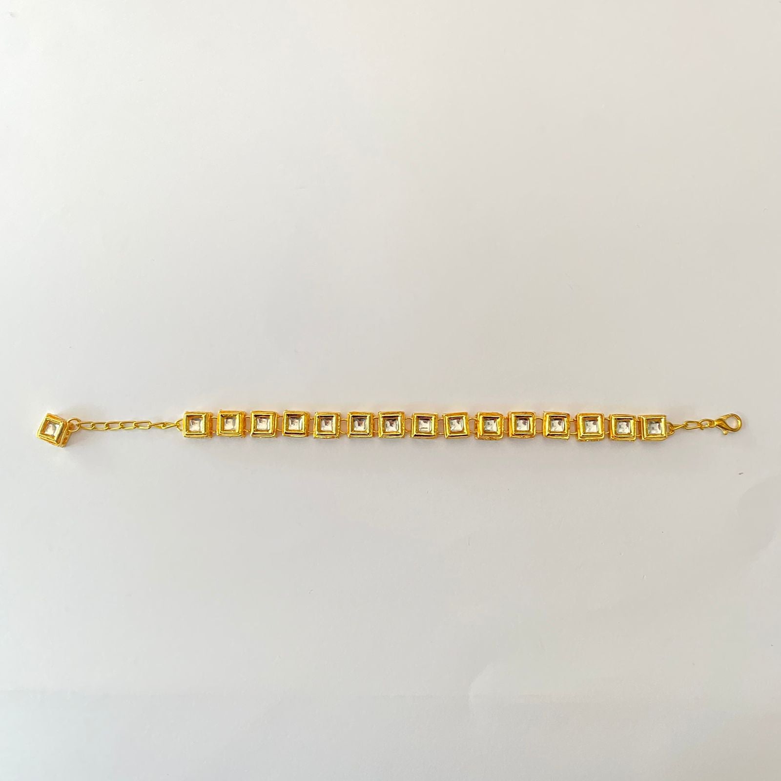 Gold Plated Kundan Pearl Square Shape Bracelet