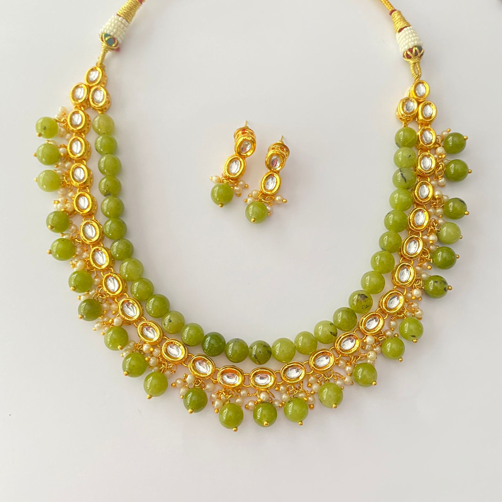 Gold Plated Kundan Peridot Stone Necklace