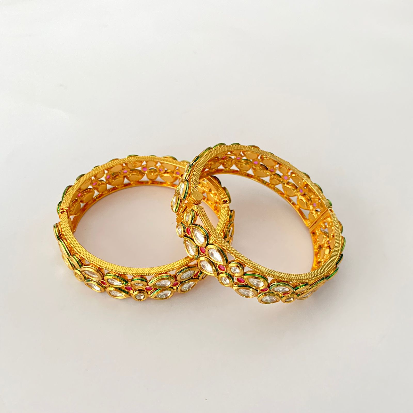 Gold Plated Kundan Ruby Bangle