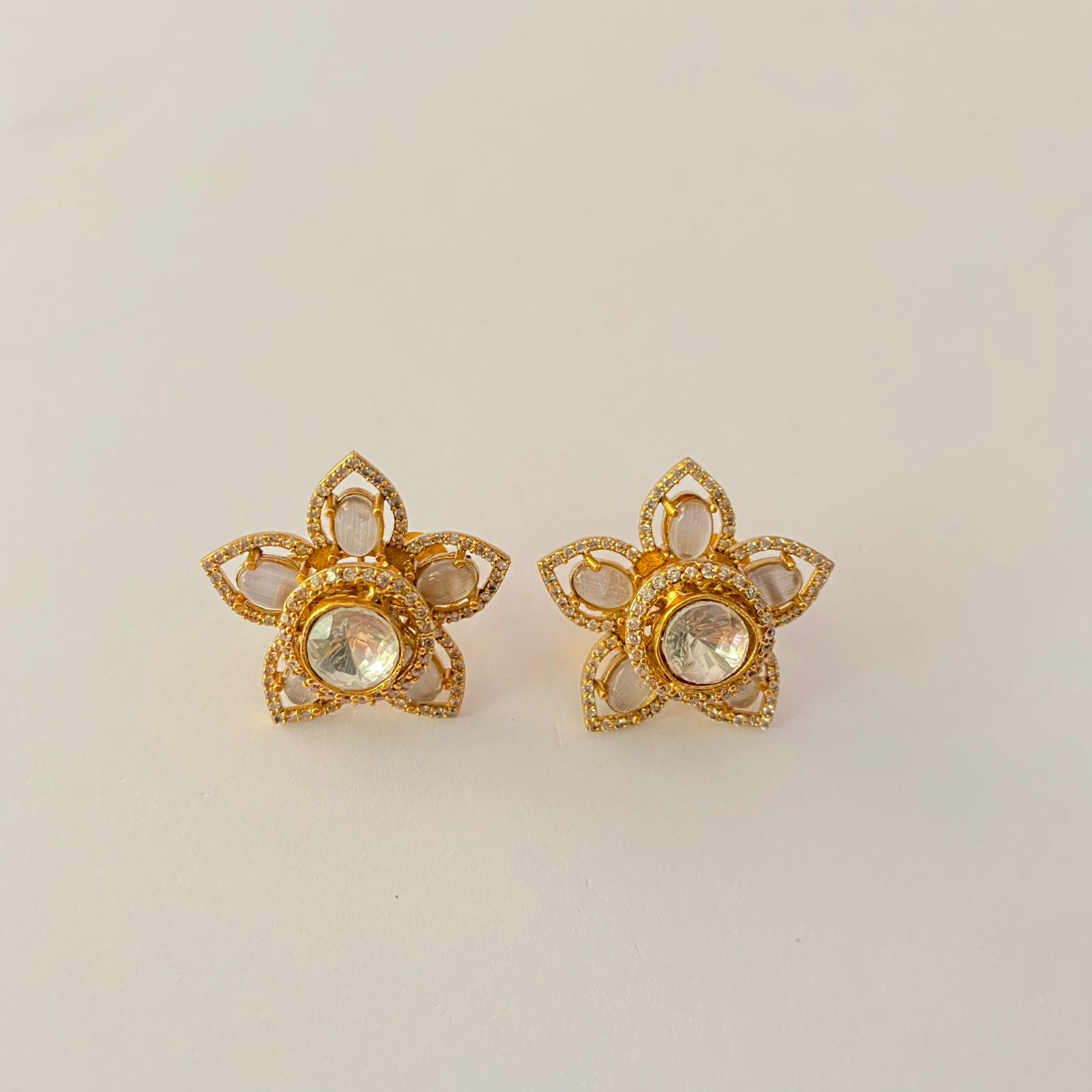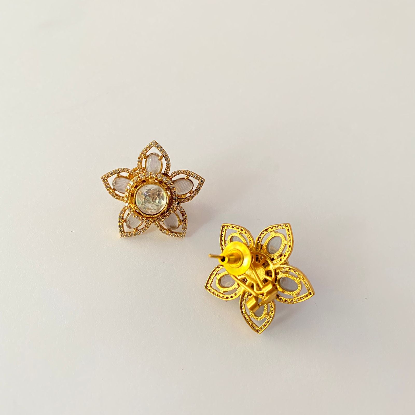 Gold Plated Polki Flower Stud