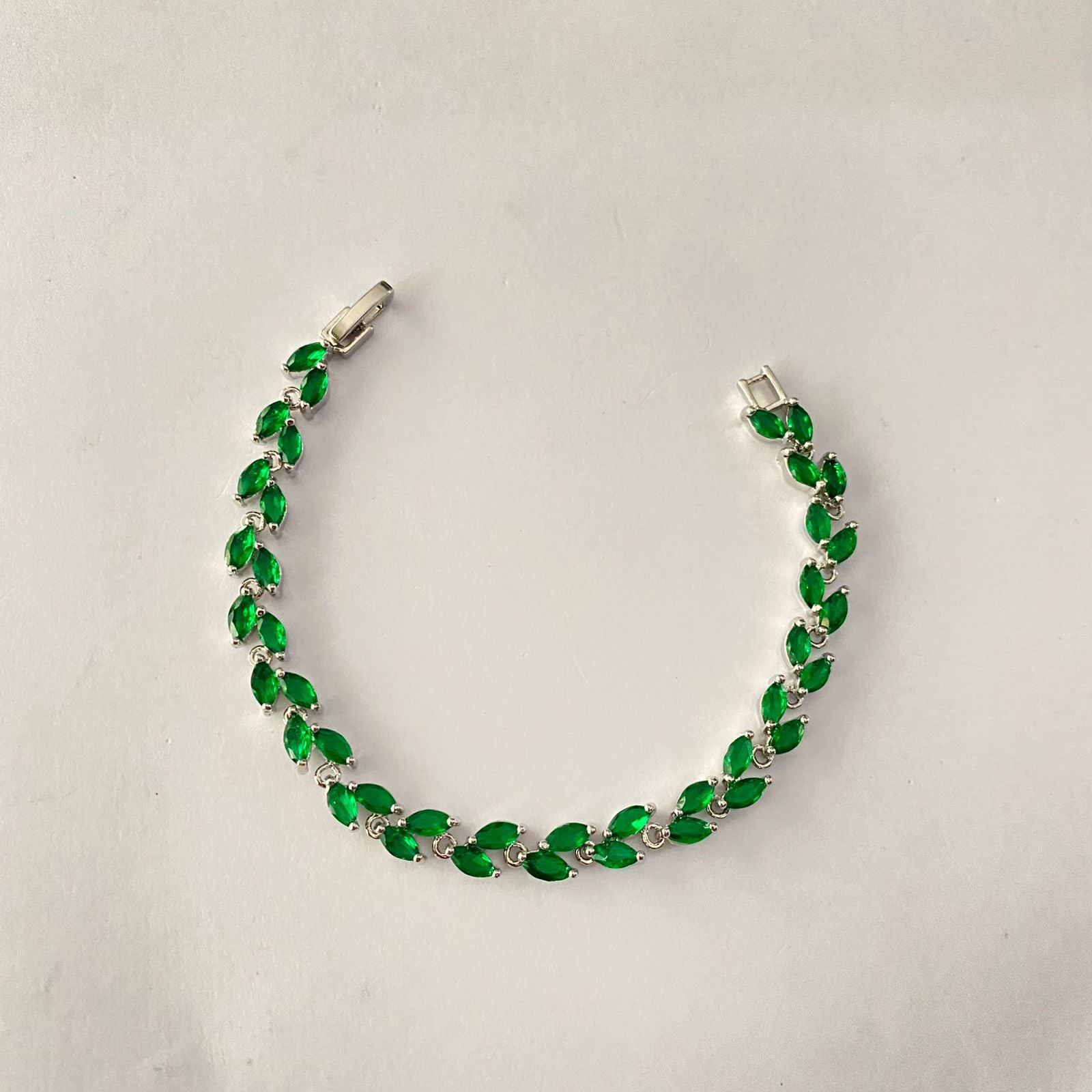 Green Silver Plated Tennis Bracelet