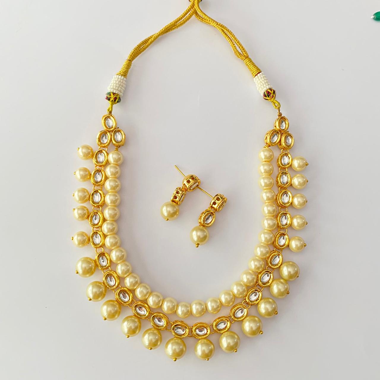 Kundan Gold Plated with off white pearl Necklace Set