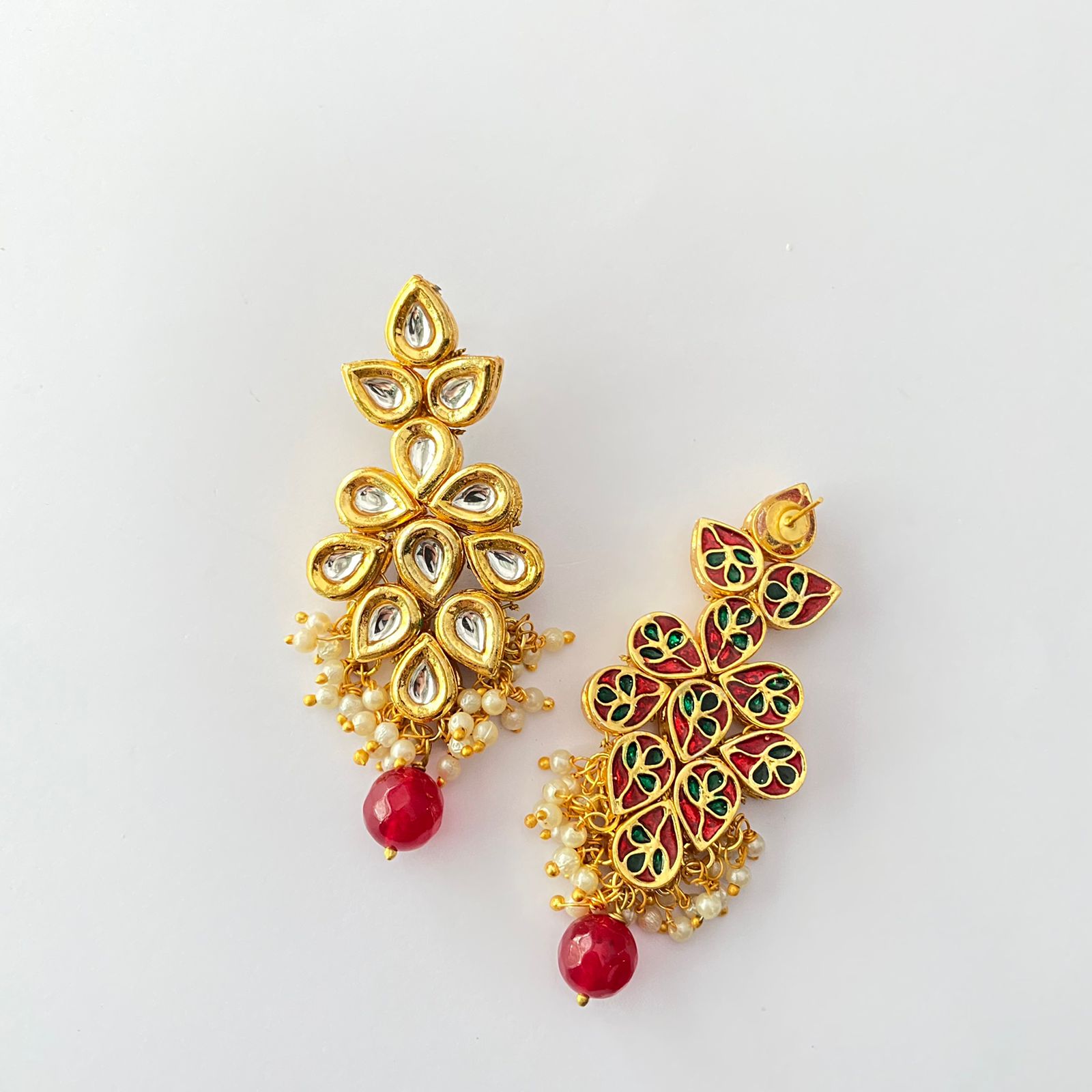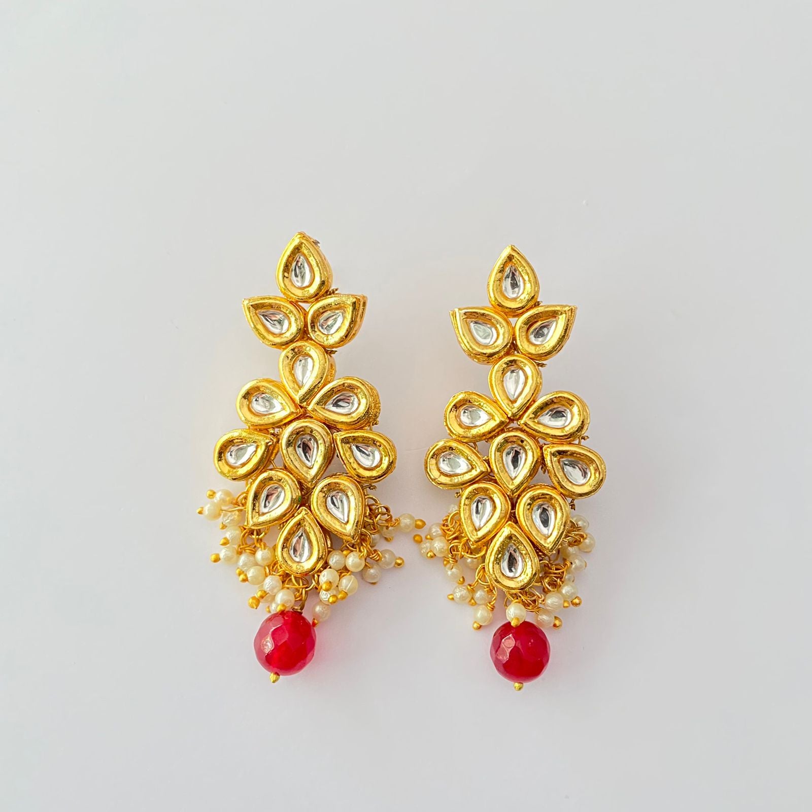 Kundan Gold Plated Ruby Drop Pearl Earring
