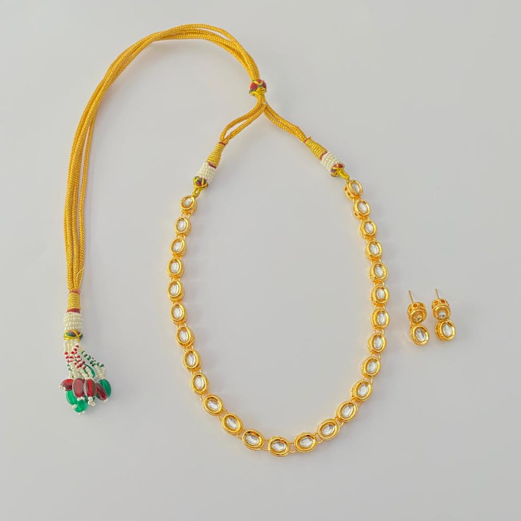 Kundan Gold Plated Sigle Layer Necklace With Earring