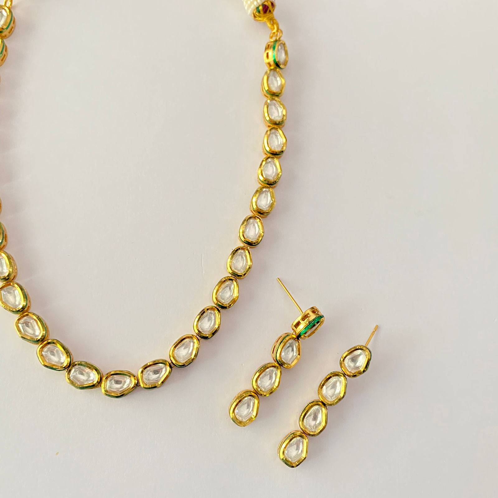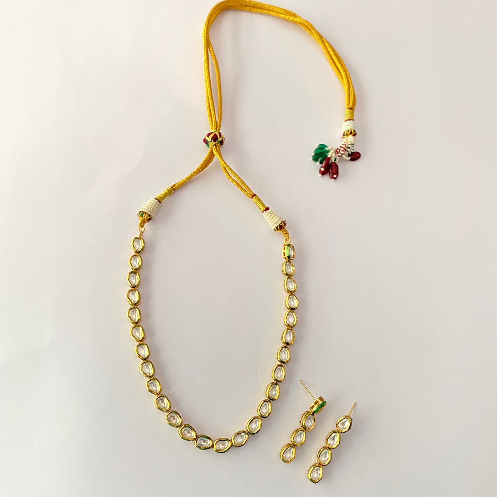 Kundan Gold Plated Single Line Necklace Set