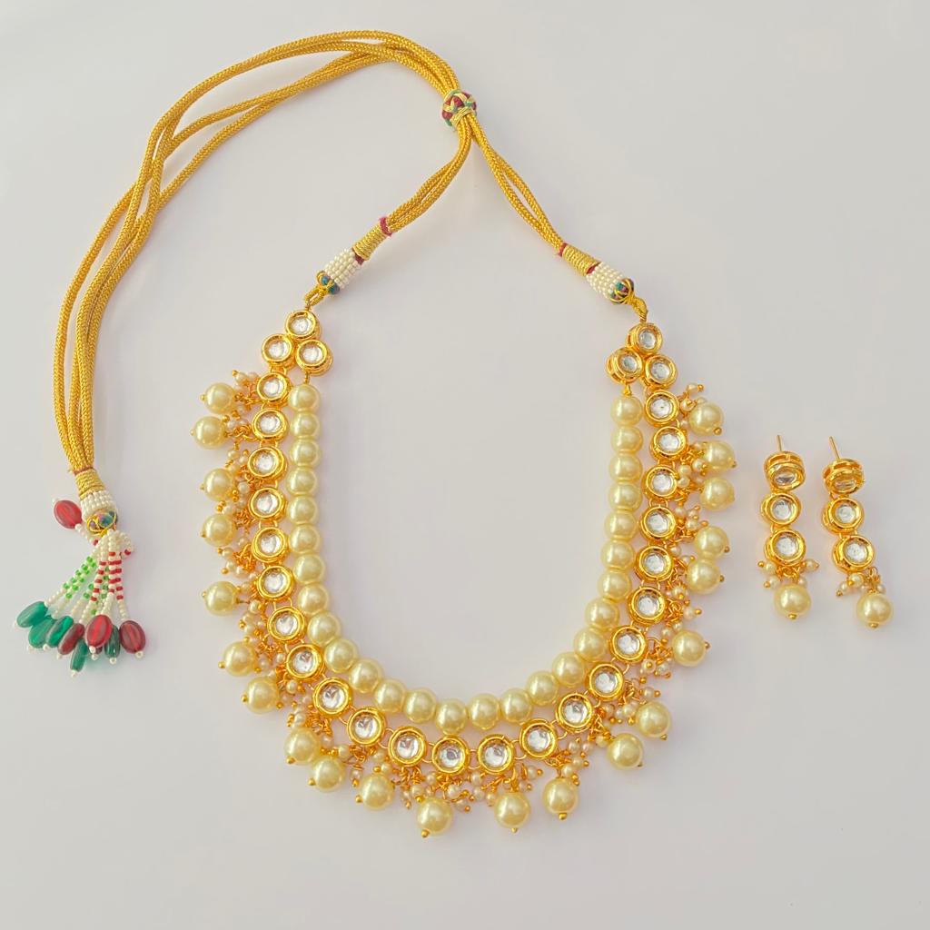 Kundan Off White Pearl Necklace set Hand Made Latest Design