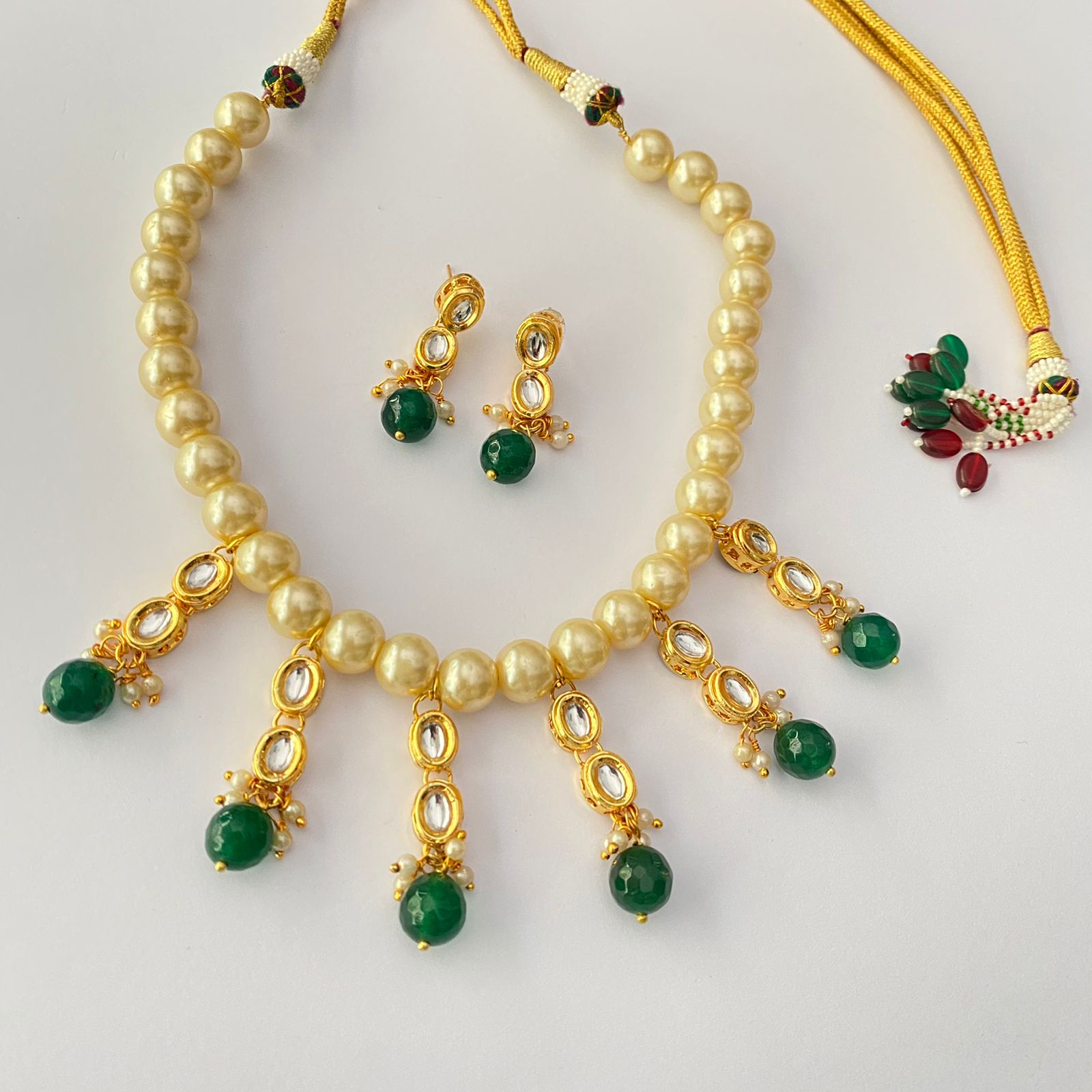 KUNDAN WHITE PEARL GOLD PLATED NECKLACE WITH EARRING