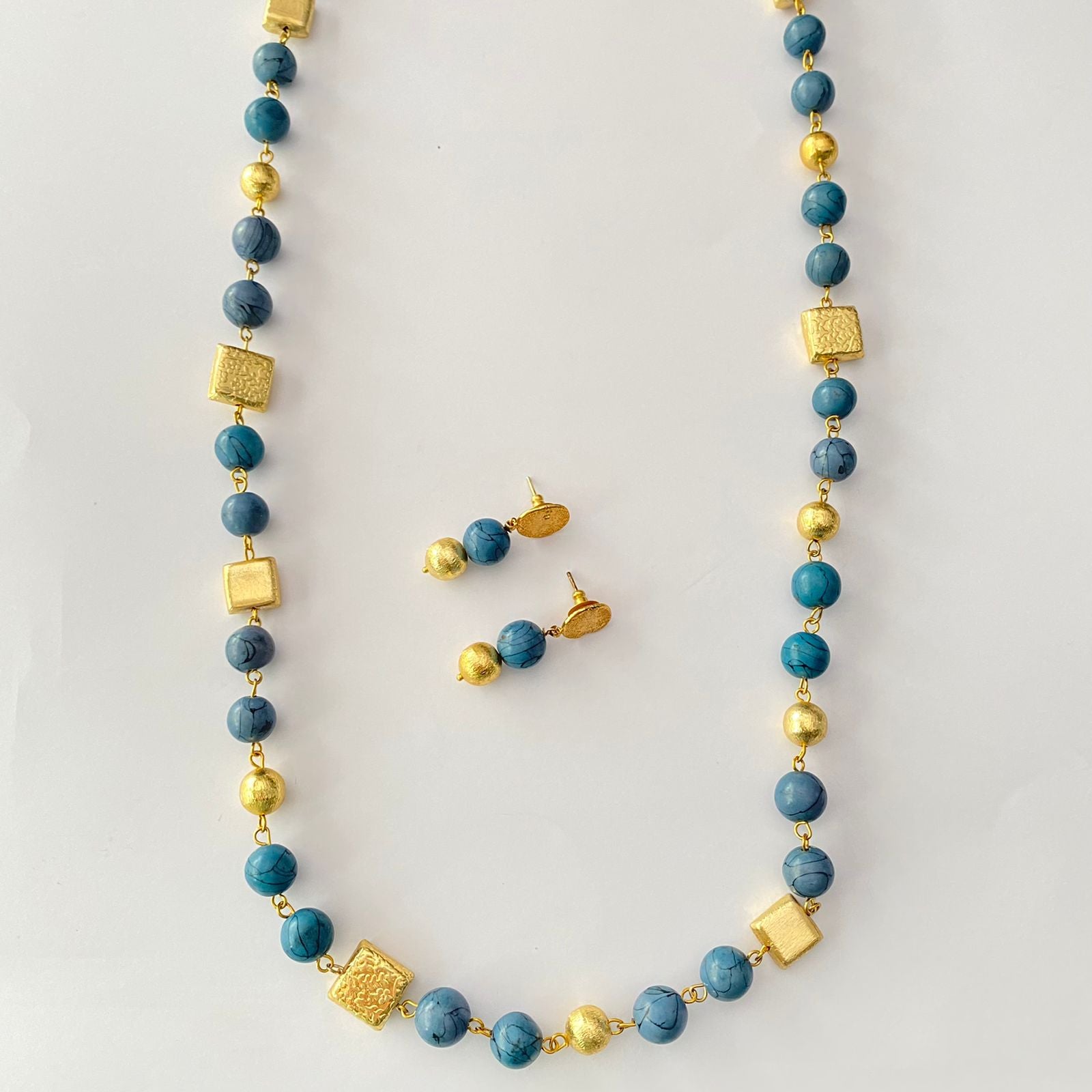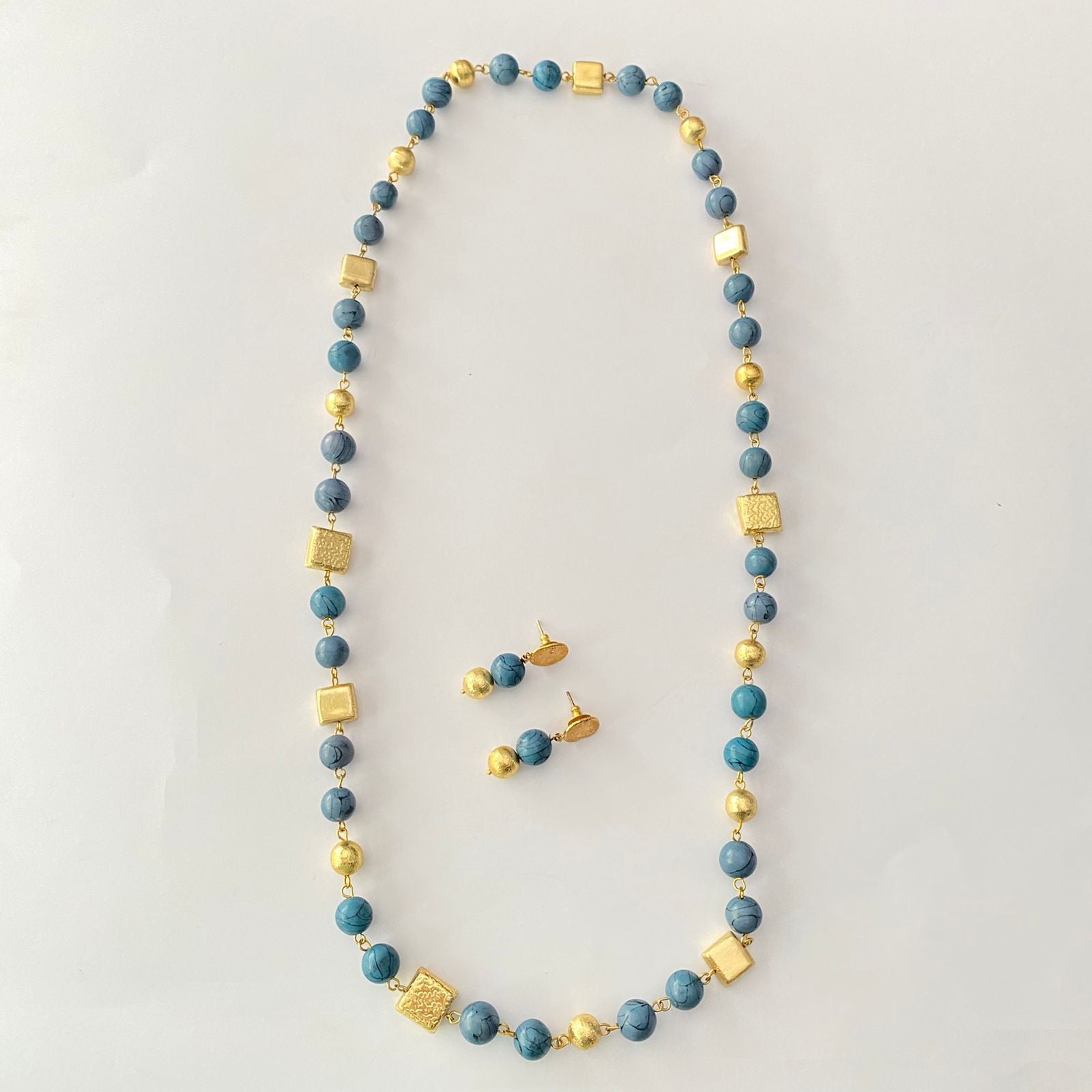 Long Blue Necklace Set