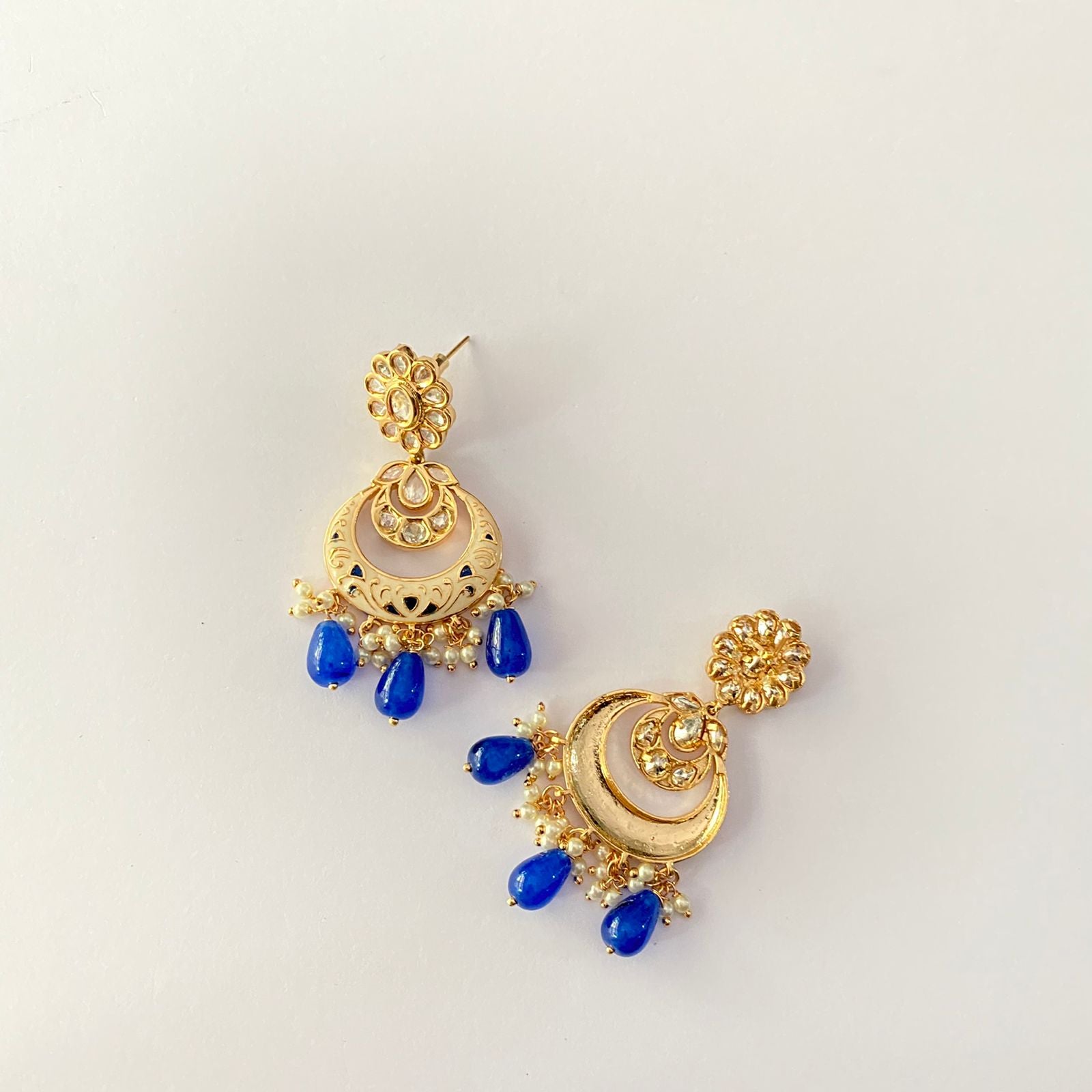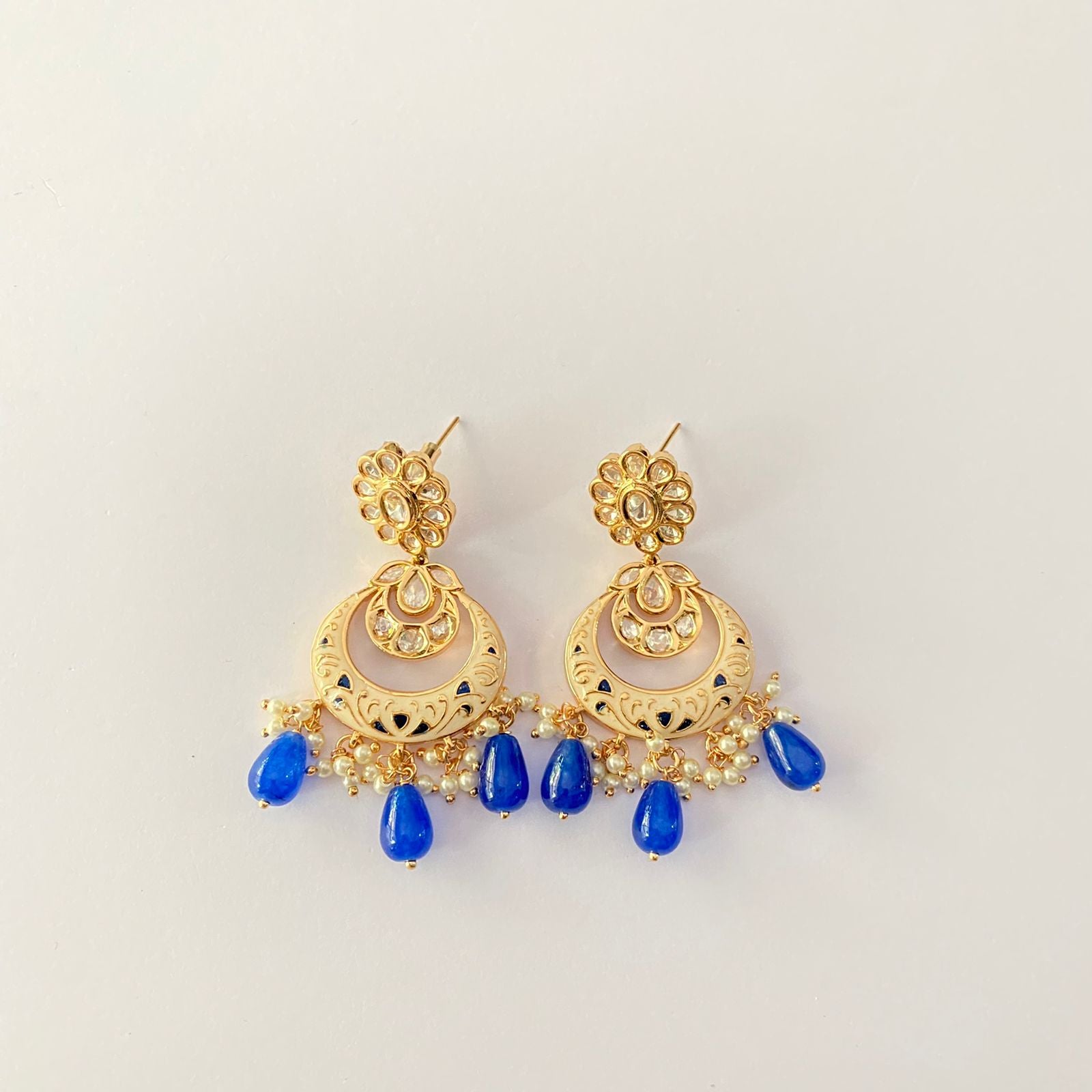 Meenakari Drop Blue Chand Bali