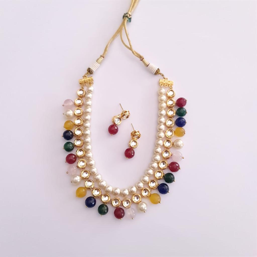 Multicolor Kundan And Pearl String Necklace