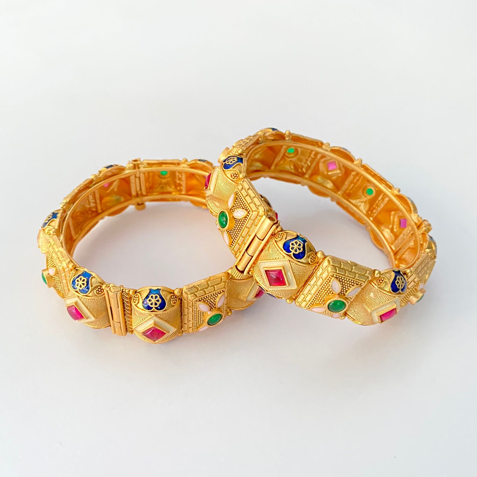 New Traditional Gold Plated Ruby & Emerald Bangle