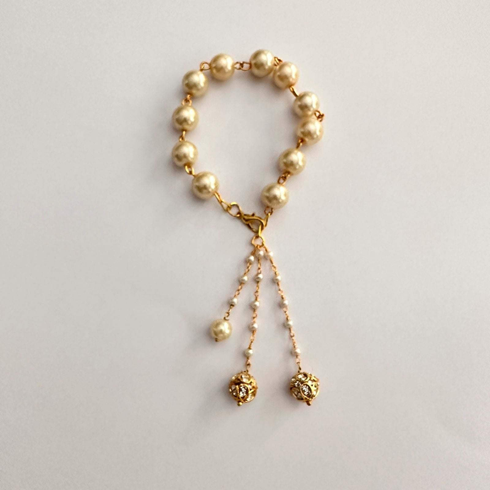 OFF-WHITE PEARL WITH GOLD PLATED CHAIN LUMBA RAKHI FOR WOMEN