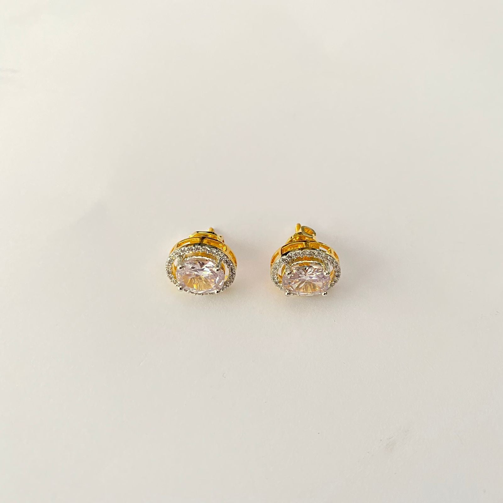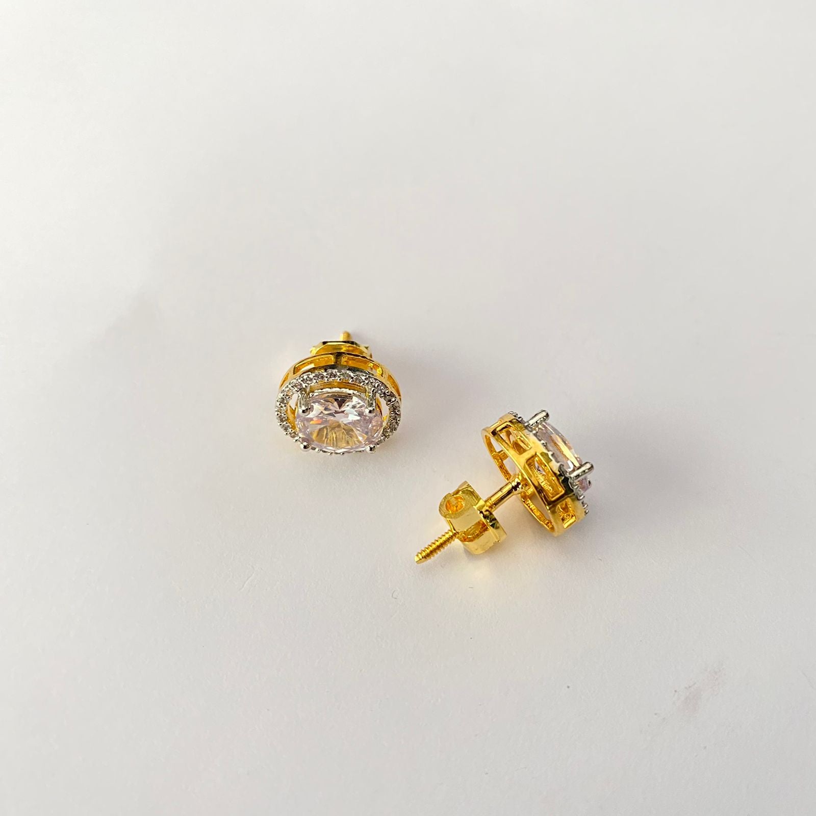 Oval Shape Gold Plated Back Screw Solitaire