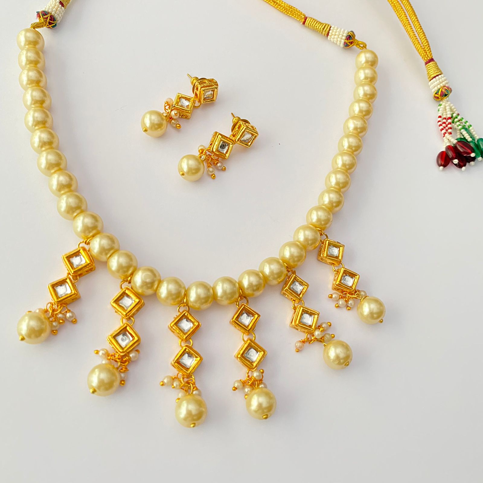 PEARL KUNDAN GOLD PLATED NECKLACE WITH EARRING