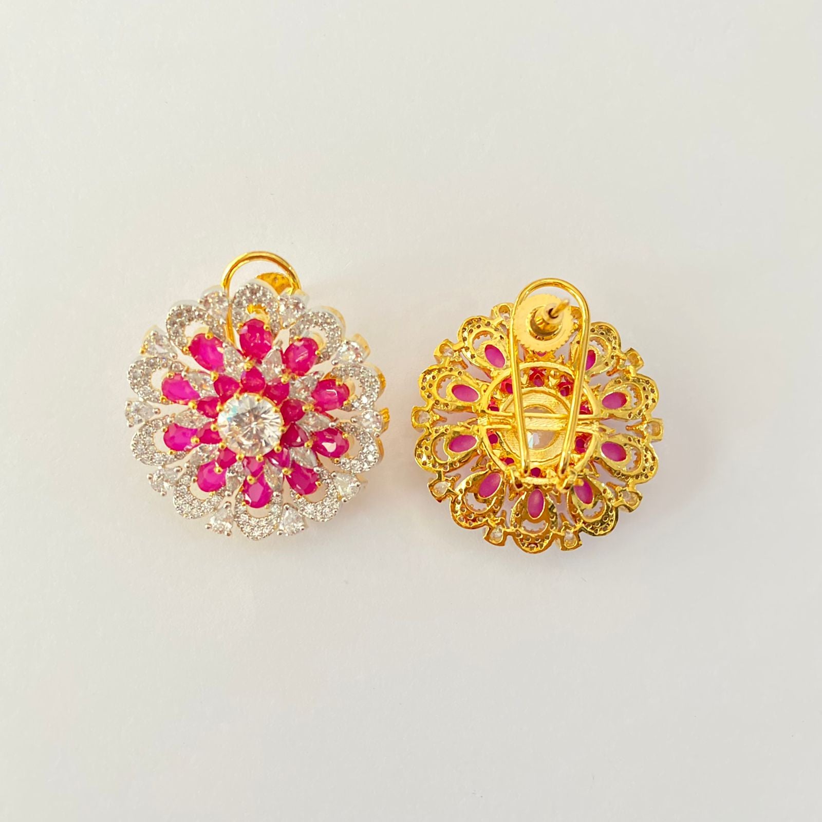 Pink Stone A.D Stud Gold Plated Back Clip Earring