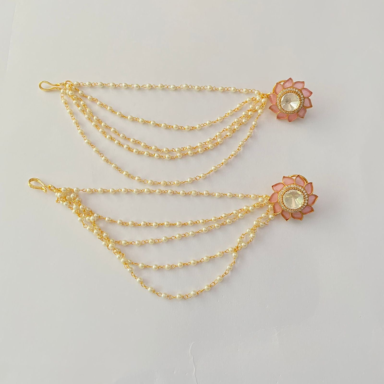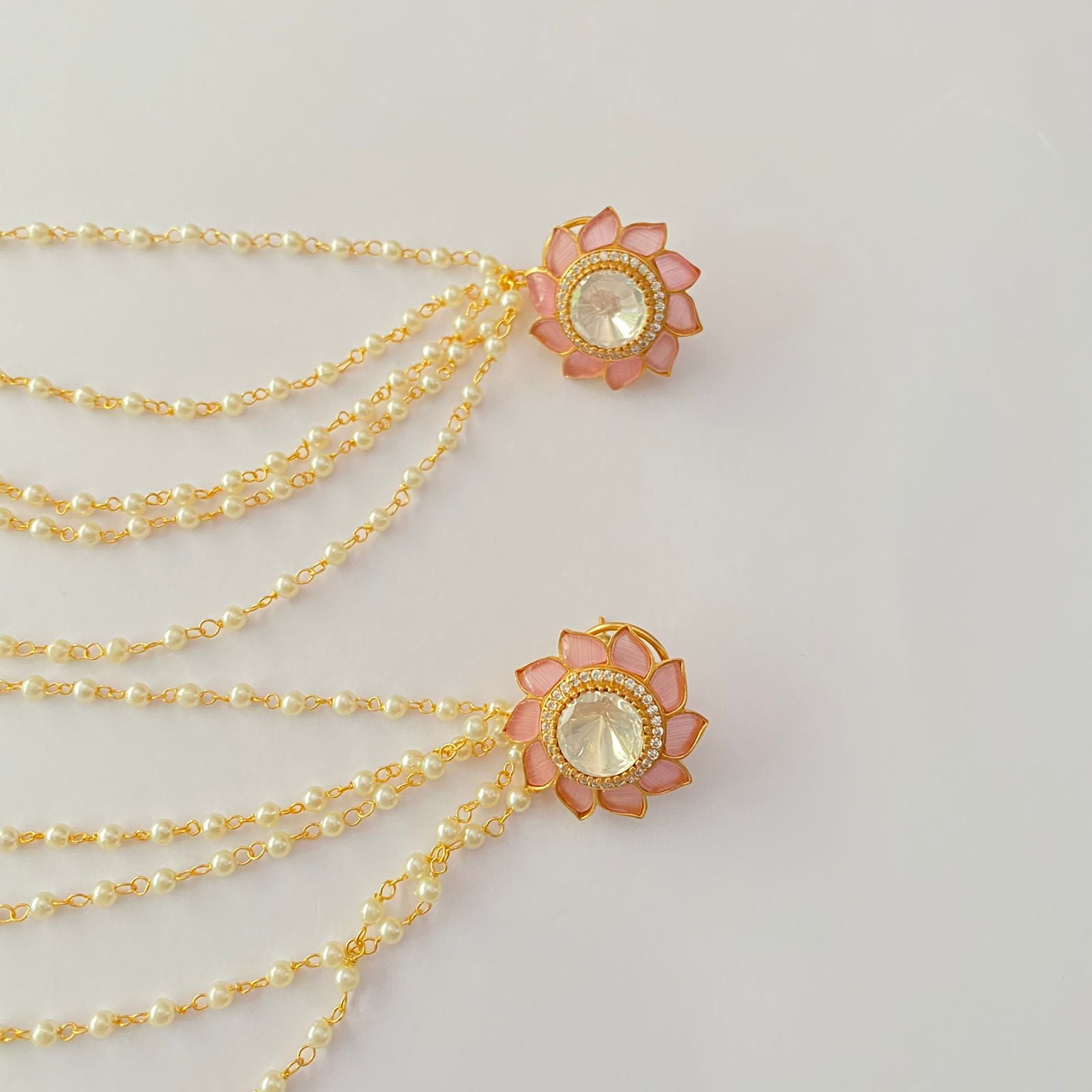 Pink with polki floral with kaan chain Stud Earring