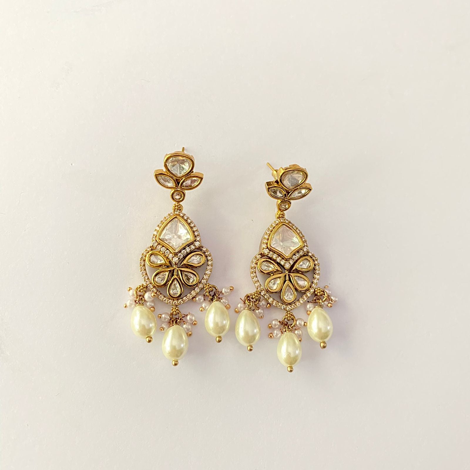 Polki Drop Pearl Earring