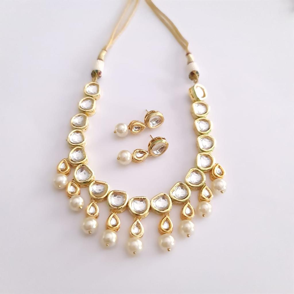 Polki Kundan With Pearl's Drop Necklace In Latest Design