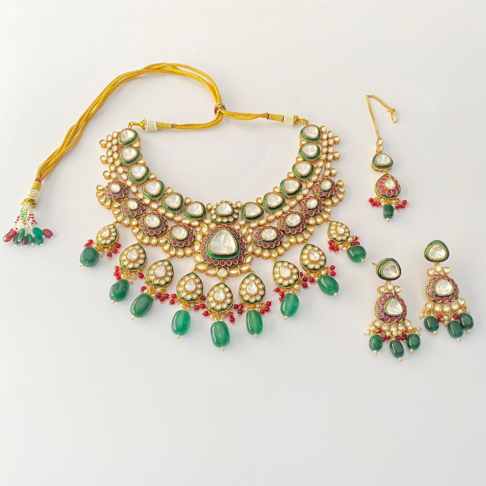 Polki Moissanite Emerald heavy Bridal Set