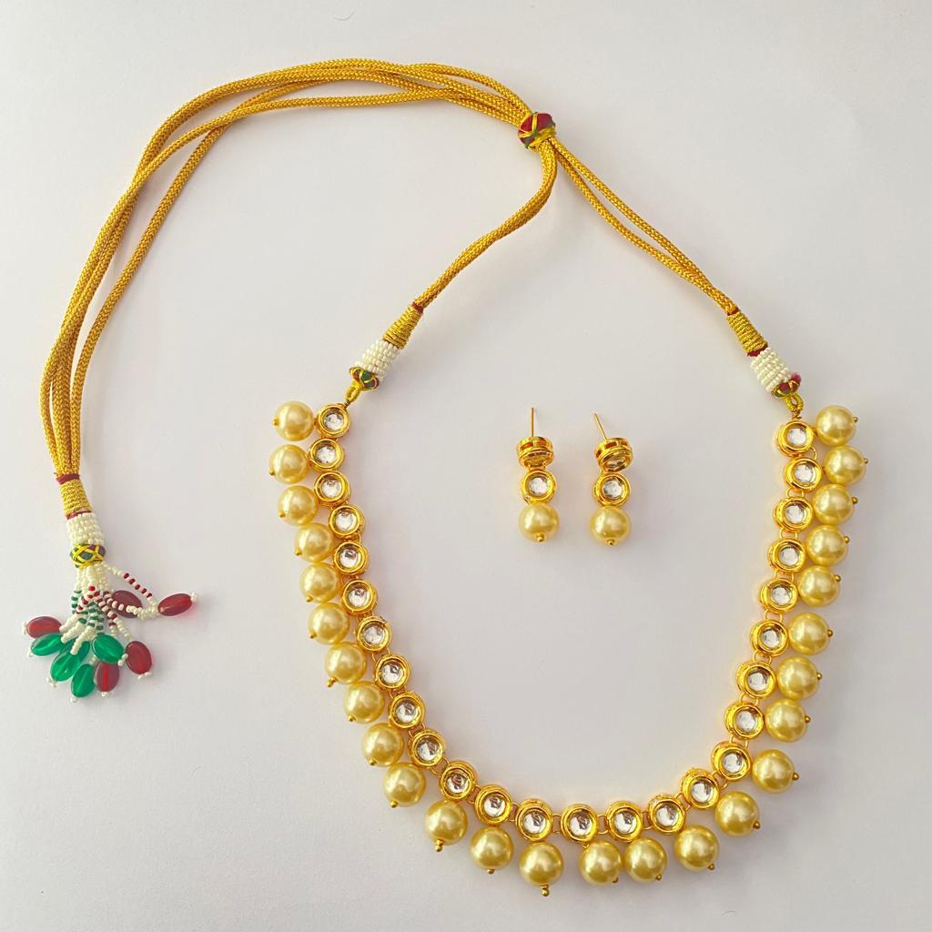 Polki Oval Design With Off White Pearl Necklace For women