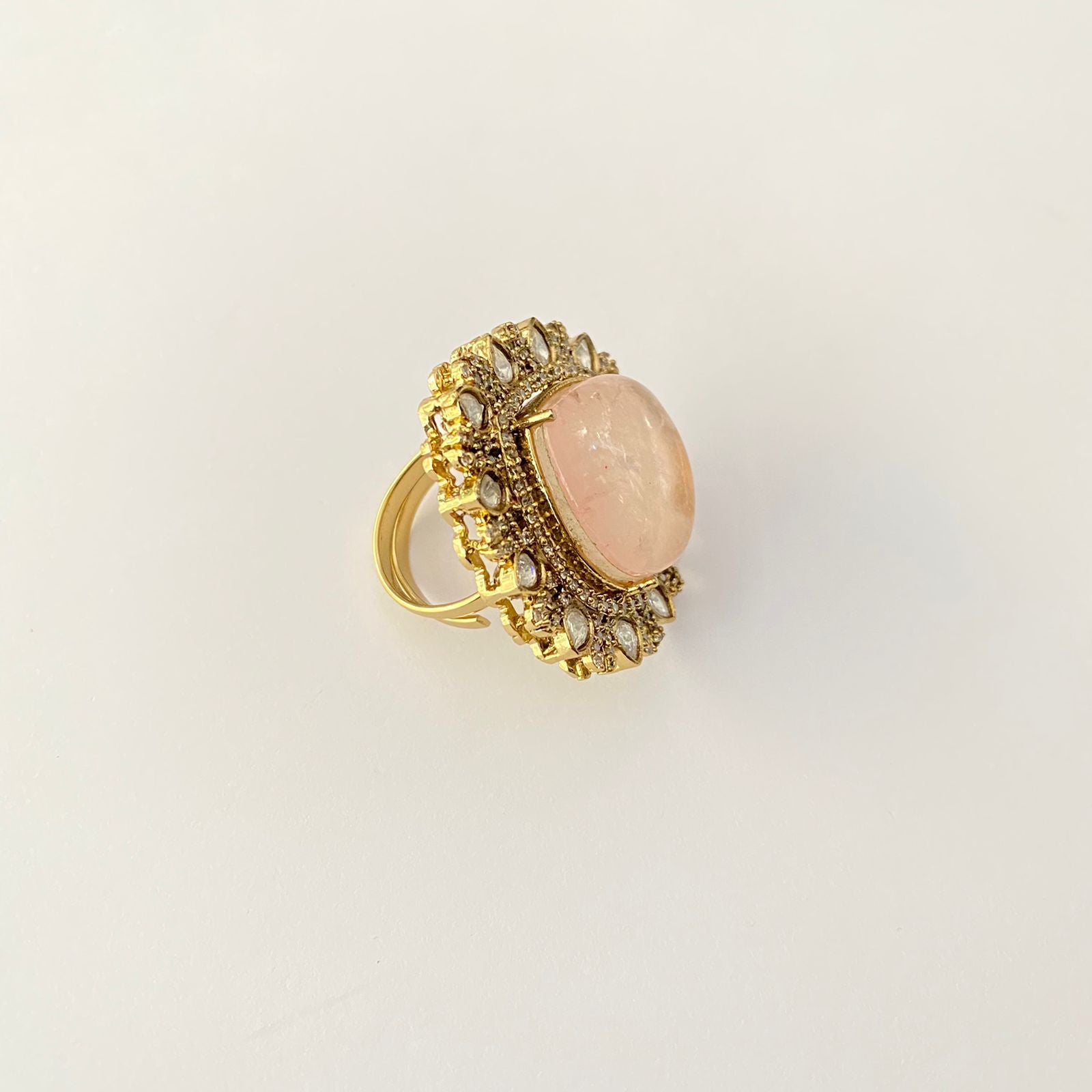 Polki pink gold plated adjustable ring