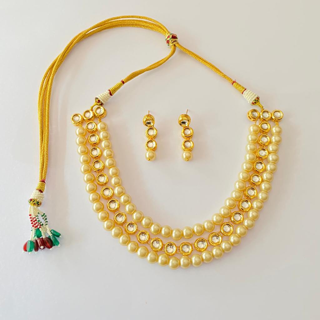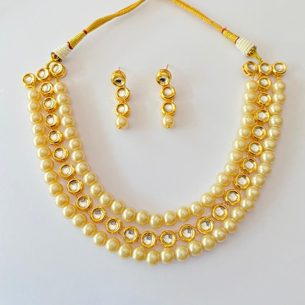 Polki With Off White Pearl Necklace set