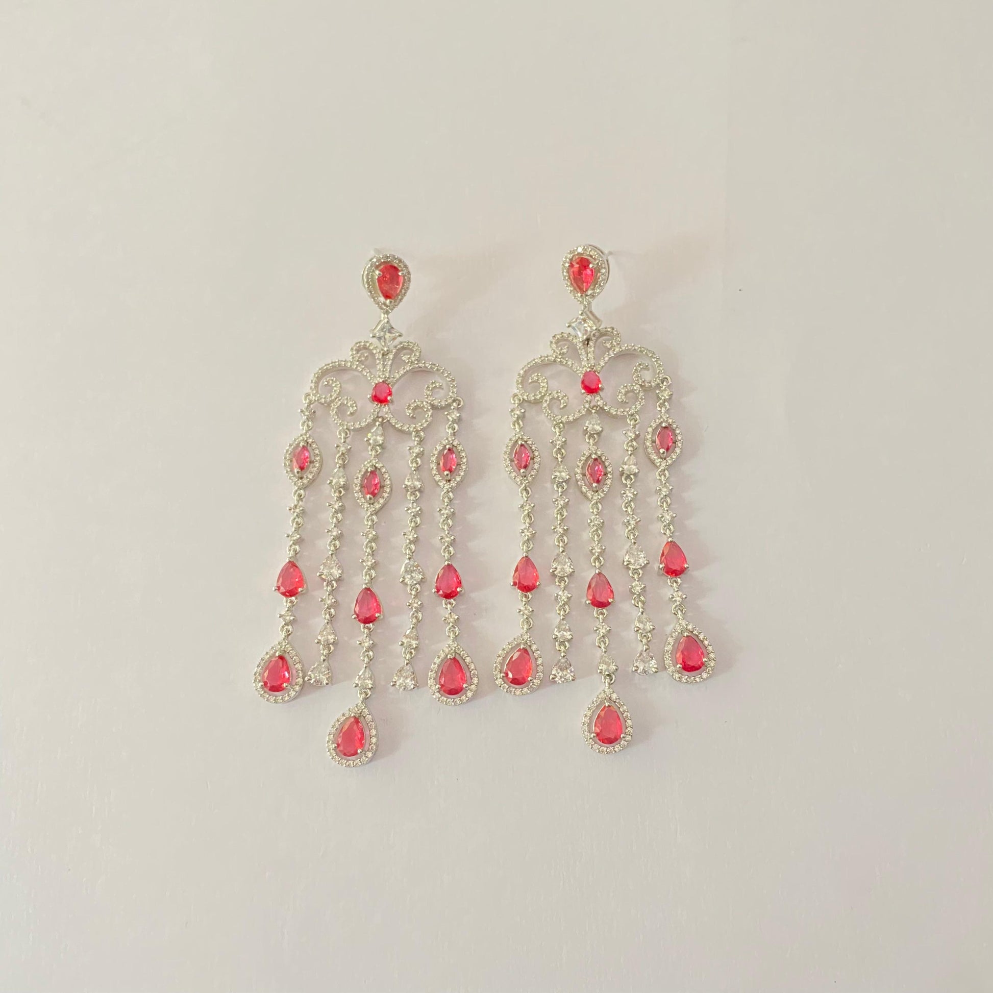 Ruby A.D Silver Plated Long Classic Dangler Earring